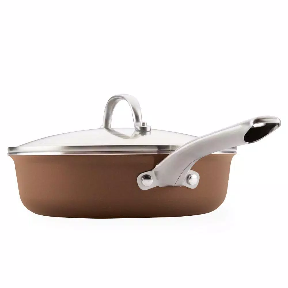 Go deep and unleash your creative kitchen passions with the Ayesha Home Collection 3-Quart Nonstick SautΓ© Pan with Lid The Ayesha Home Collection puts inspiring, top-quality cookware in easy reach for creating flawless traditional favorites, cooking up fun and easy weeknight family dinners or making a signature meal for brunches, date night, or holiday get-togethers. The 3-Quart Nonstick Covered SautΓ© Pan features chic, modern style and high pan walls for a deep sautΓ© pan thatβs perfect for mastering your chicken parmesan or just pulling together a generous helping of comfort food like Ayeshaβs Five Ingredient Pasta. Constructed from fast- and even-heating aluminum with stylish hard porcelain exteriors, the cookware features a sleek, flared silhouette and looks great from countertop to stovetop. More than just a pretty pan, this high-quality cookware is heat safe to 500Β° F and features a double-riveted stainless steel handle and shatter resistant glass lid for wielding your max versatility in the kitchen. The glass lid locks in heat and moisture for the juiciest Mirin and Soy Steak to pair with sushi rice, and a diamond-textured surface and enhanced nonstick coating provides long-lasting, effortless food release and easy cleanup of rich recipes like a party platter of Ayeshaβs Pork Chops and Apples. Plus, this Ayesha Curry kitchenware helps support No Kid Hungry to provide up to 500,000 meals to children in need. Learn more at nokidhungry.org/onedollar