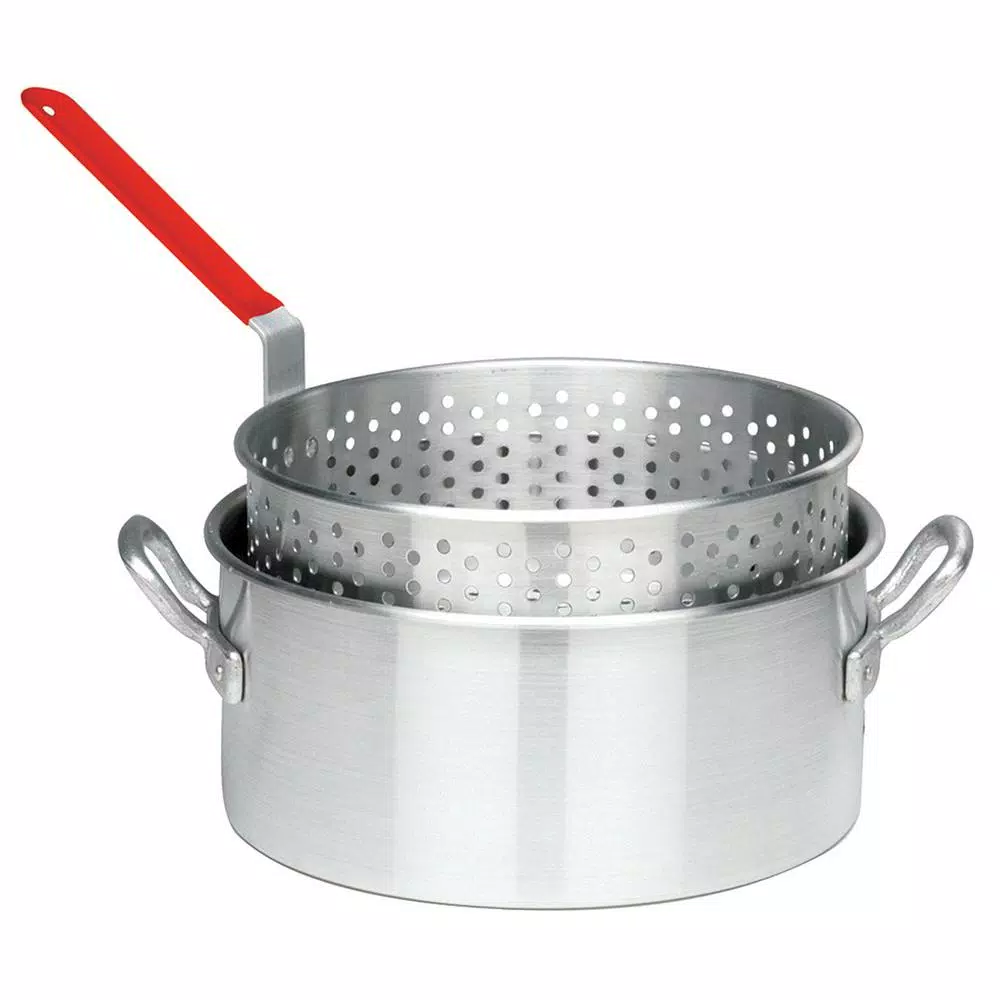 Use the Bayou Classic 10 qt. Aluminum Fry Pot with Perforated Basket to fry up all your favorite foods. This grilling accessory features aluminum construction for a sleek look. For versatility, you can easily remove the basket to use the pot for other cooking applications, such as boiling.