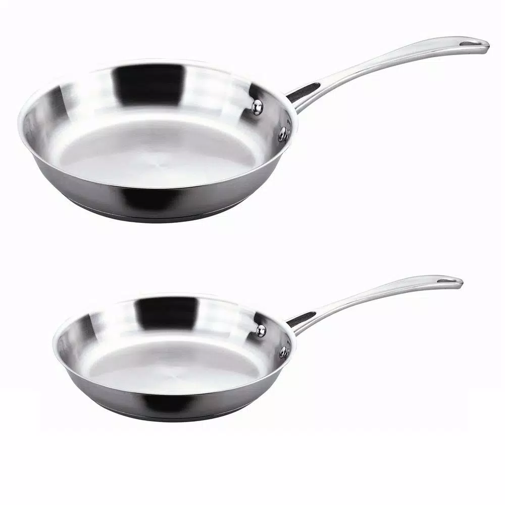 A reliable, durable staple of any modern kitchen, these Copper Clad frying pans wonβt disappoint. Made of durable 18/10 stainless steel and boasting a copper core for even heat distribution, these pans are ready to cook on any heat source, including induction. Easy to clean and dishwasher safe. Set includes: 8 in. fry pan; 12 in. fry pan.