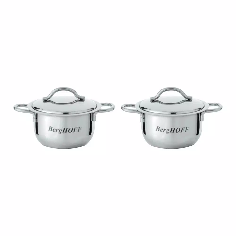 Delight and entertain with this charming set of novelty BergHOFF mini pots. Made from durable, mirror-finish stainless steel, these pots are perfect as decoration or for cooking sides, individual servings, or just something small and fun. Dishwasher safe.