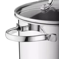 - Wide-grip handles provide a secure, solid grip, even with oven mitts