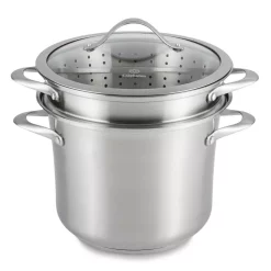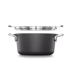 - Metal-utensil-safe, durable 3-layer nonstick interior with a hard-anodized aluminum exterior