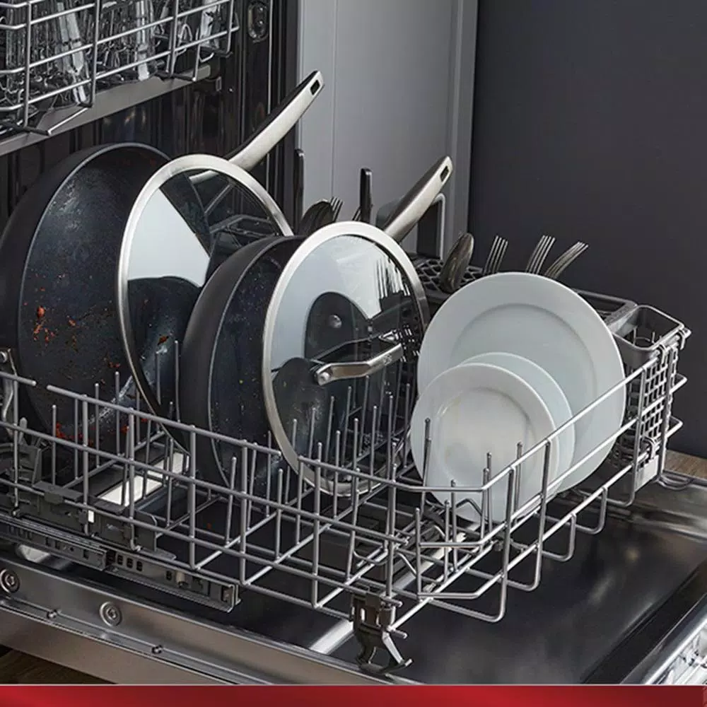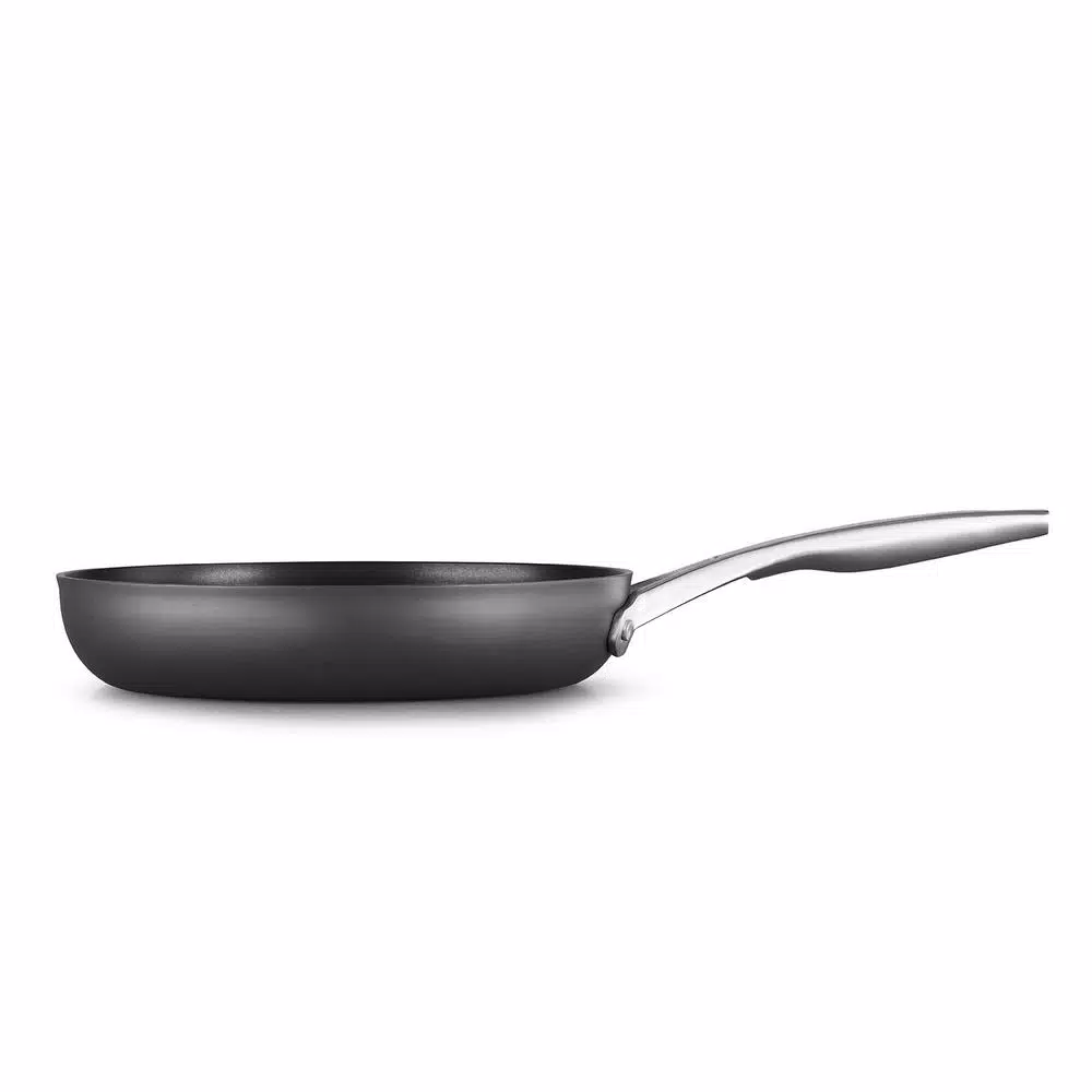 - Metal-utensil-safe, durable 3-layer nonstick interior with a hard-anodized aluminum exterior