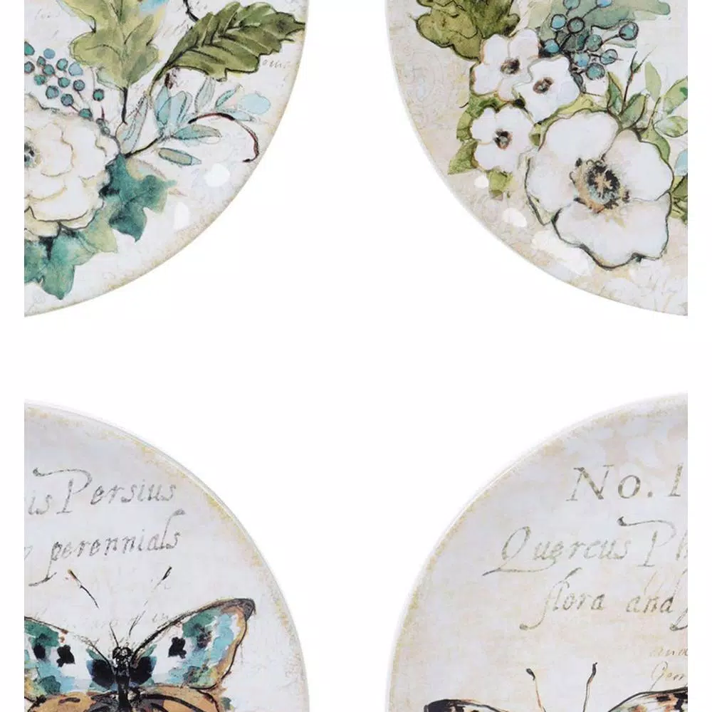 Certified Internationalβs Nature Garden designed by Susan Winget combines flowers, calligraphy and butterflies on an antiqued background for lovely ceramic dinnerware and serveware. Featured in this collection are a colorful 3-D hand-painted butterfly house cookie jar and an S and P set, both decorative yet functional. Beautifully detailed with a medley of vibrant hues.