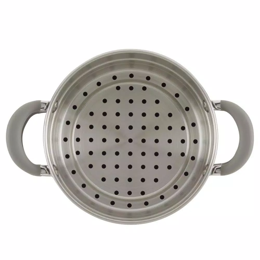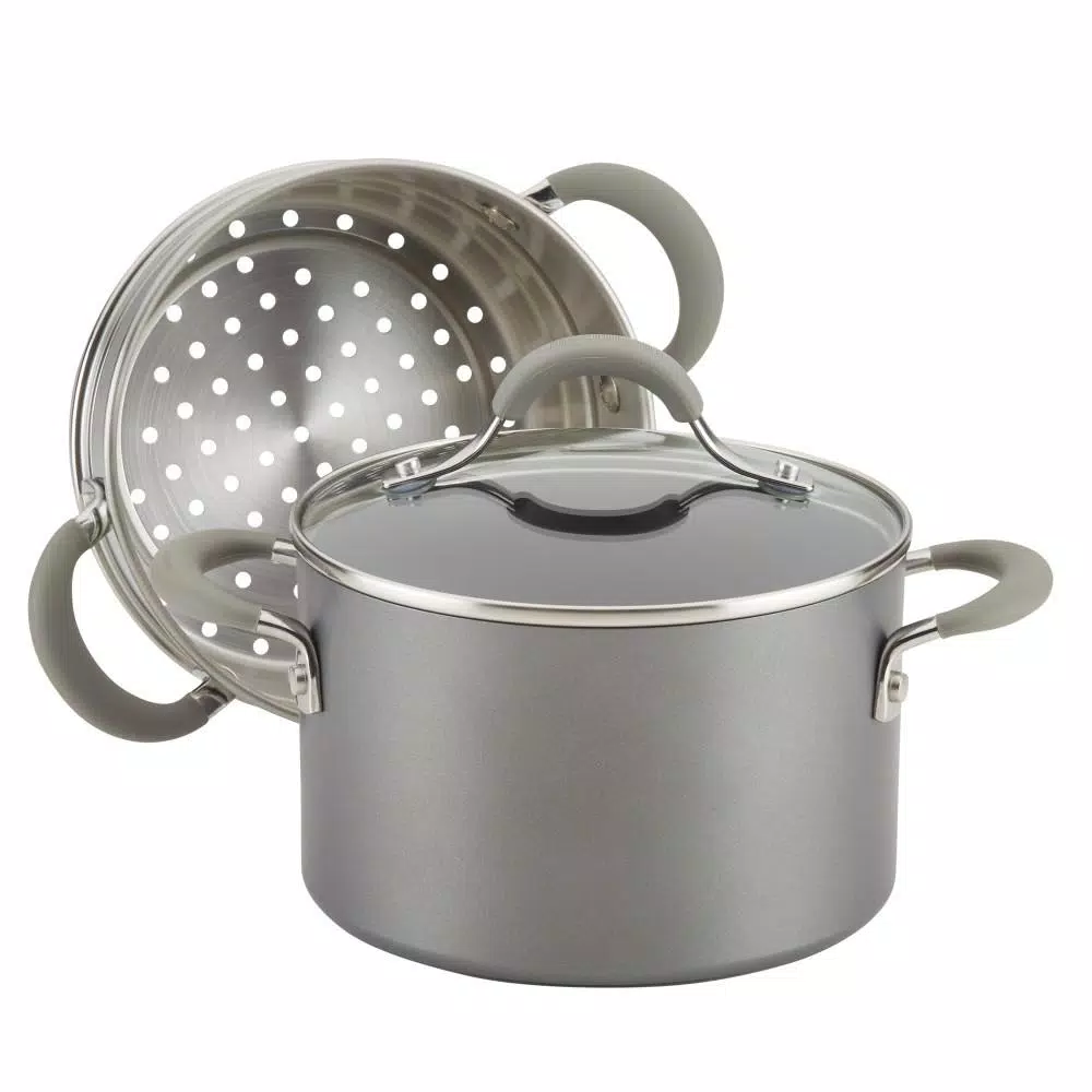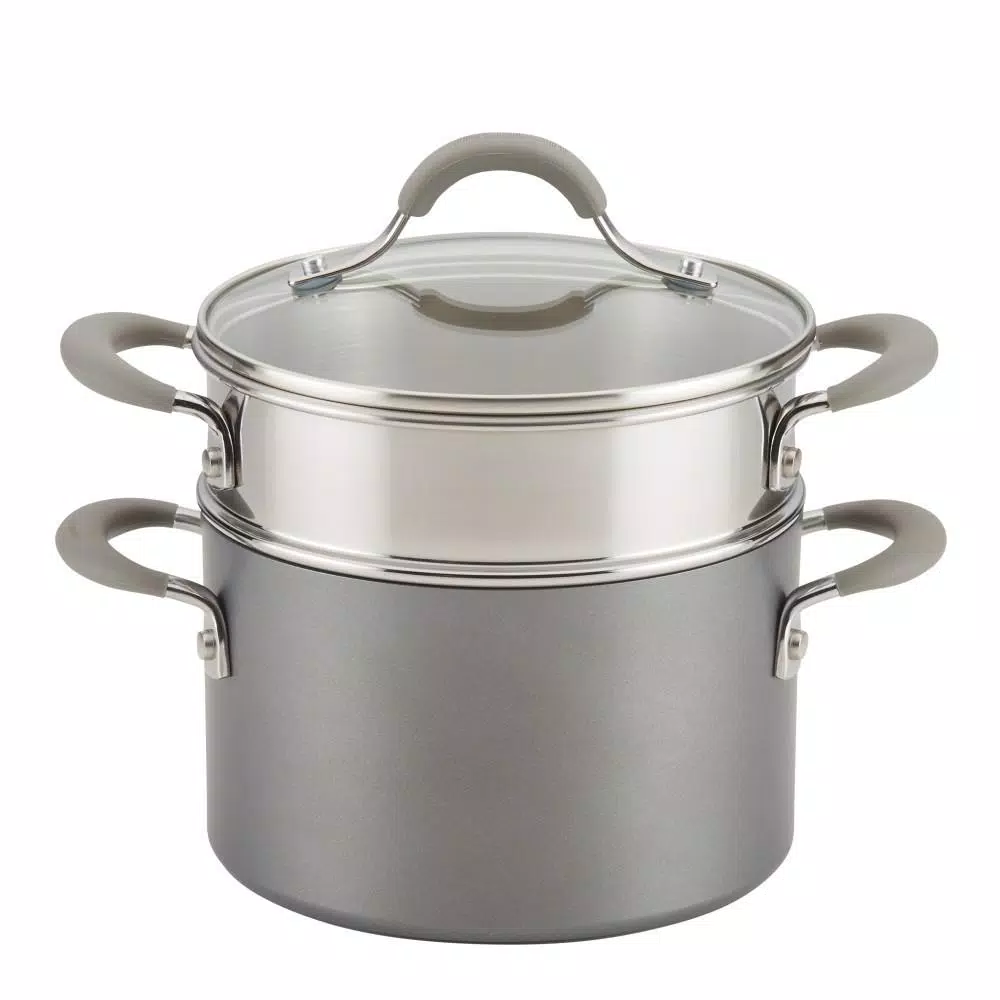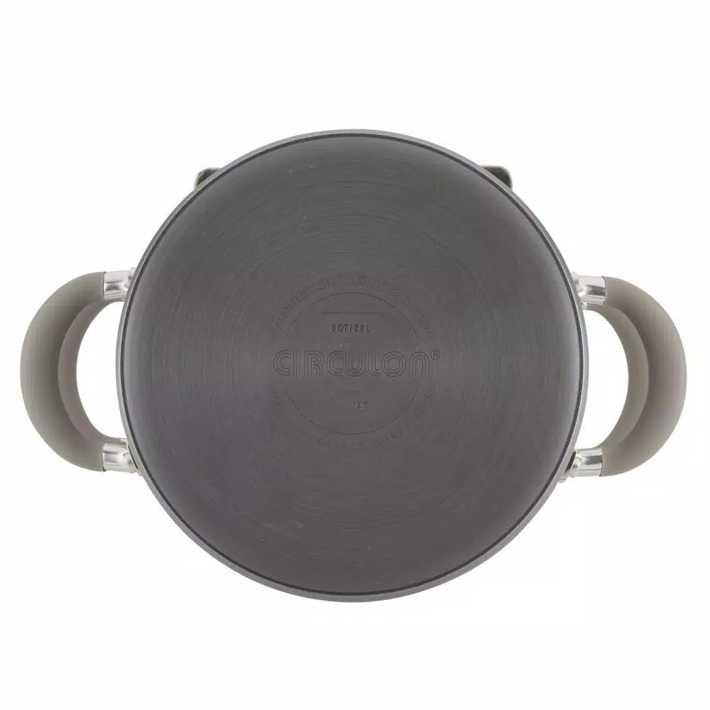 Steam it, boil it, and make easy one-pot family meals with the Circulon Elementum 3-Quart Covered Multipot. Featuring a versatile stainless steel colander insert, this amply-sized stockpot is crafted from super-tough, hard-anodized aluminum thatβs twice as strong as stainless steel and boasts the TOTAL Nonstick System of raised circles and triple layer, premium quality nonstick for long-lasting food release and easy cleanup. Make an easy weeknight Pepper and Sausage Penne or pull together a steamed shrimp and corn feast to feed the whole family with this high capacity, high performance stockpot. A shatter resistant, tempered glass lid seals in heat and moisture and dual riveted stainless steel handles with sleek silicone grips provide a solid, comfortable grasp and are heat safe up to 400 F. PFOA-free, metal utensil safe nonstick inside and out comes in show-stopping oyster gray exterior color while delivering superior food release and super-easy cleanup of even the stickiest recipes. Circulon nonstick technology is so advanced, it lasts 10 times longer than ordinary nonstick. Thatβs why Circulon comes with a Hassle-Free Lifetime Guarantee. For a one-pot-meal-friendly multipot that delivers on the cookware gotta-haves of nonstick performance, even heat distribution, long-lasting durability, and easy cleanup, choose the high capacity solution of the Circulon Elementum 3-Quart Covered Stockpot, because when circles align, your day delivers.