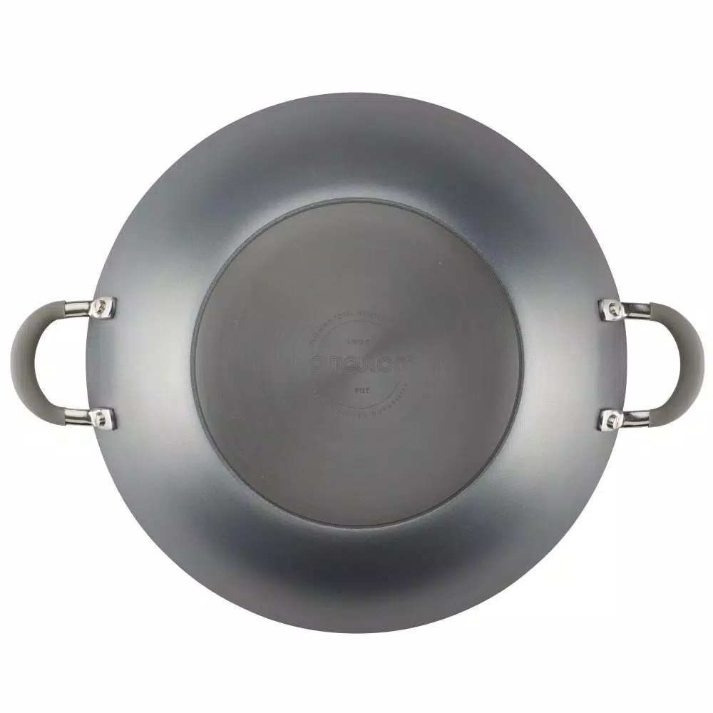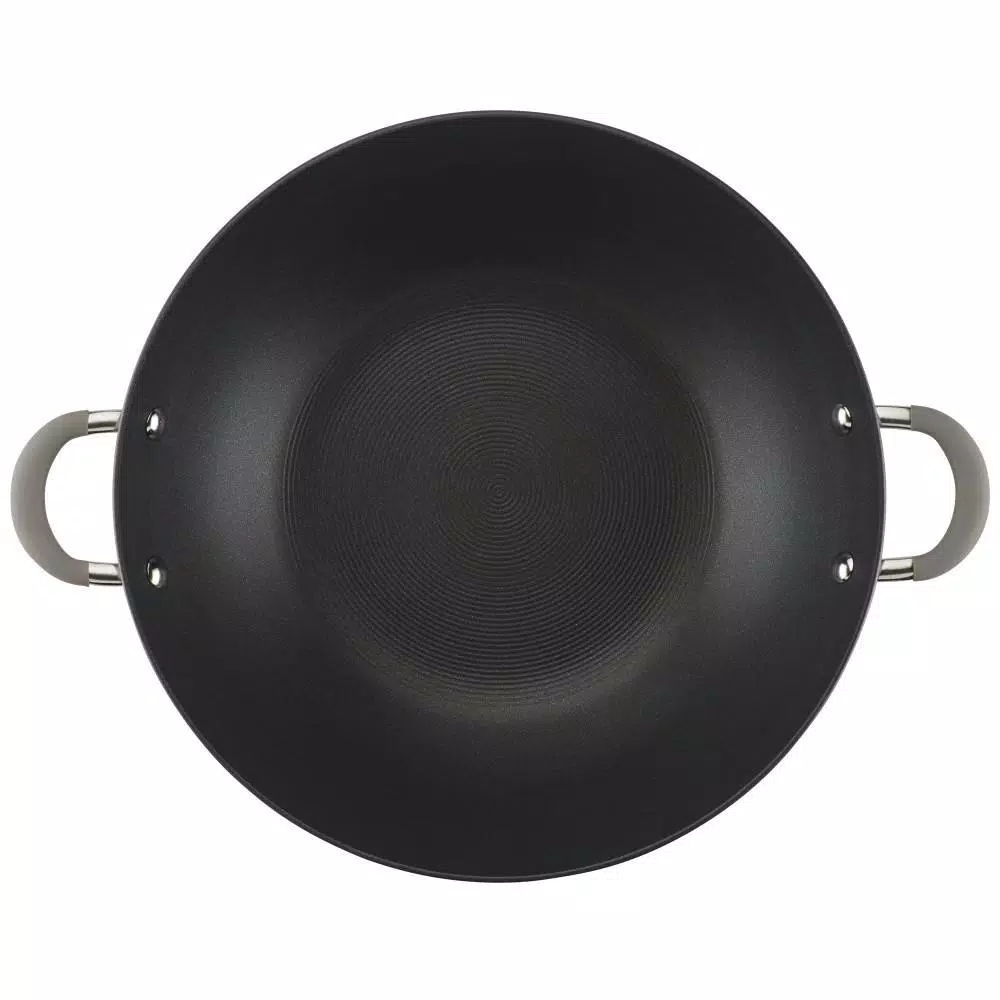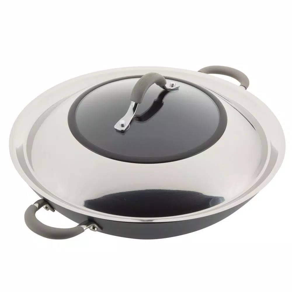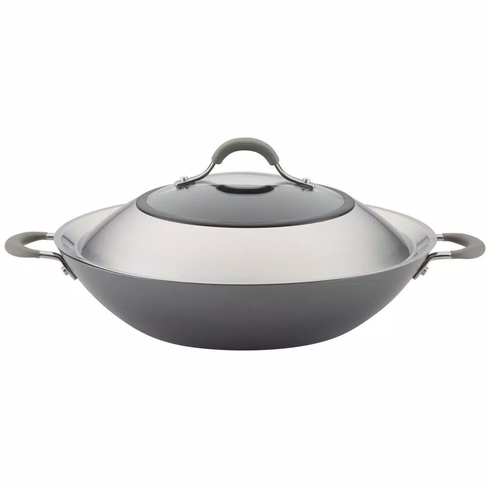 Make Asian-inspired recipes with ease and cook smarter (not harder) in the kitchen with the Circulon Elementum 14-Inch Covered Wok with Side Handles.This classic covered wok is constructed from super-tough, hard-anodized aluminum that’s twice as strong as stainless steel and boasts the TOTAL Nonstick System of raised circles and triple layer, premium quality nonstick for long-lasting food release and easy cleanup. Make Kung Pao chicken for two or pull together a sweet and sour shrimp with noodles for the whole family using this high performance stir fry cookware. A shatter resistant, tempered glass lid seals in heat and moisture and dual riveted stainless steel side handles with sleek silicone grips provide a solid, comfortable grasp and are heat safe up to 400 F. PFOA-free, metal utensil safe nonstick inside and out comes in show-stopping oyster gray exterior color while delivering superior food release and super-easy cleanup of even the stickiest recipes. Circulon nonstick technology is so advanced, it lasts 10 times longer than ordinary nonstick. That’s why Circulon comes with a Hassle-Free Lifetime Guarantee.For a classic wok that delivers on the cookware gotta-haves of nonstick performance, even heat distribution, long-lasting durability, and easy cleanup, choose the Circulon Elementum 14-Inch Covered Wok with Side Handles, because when circles align, your day delivers.