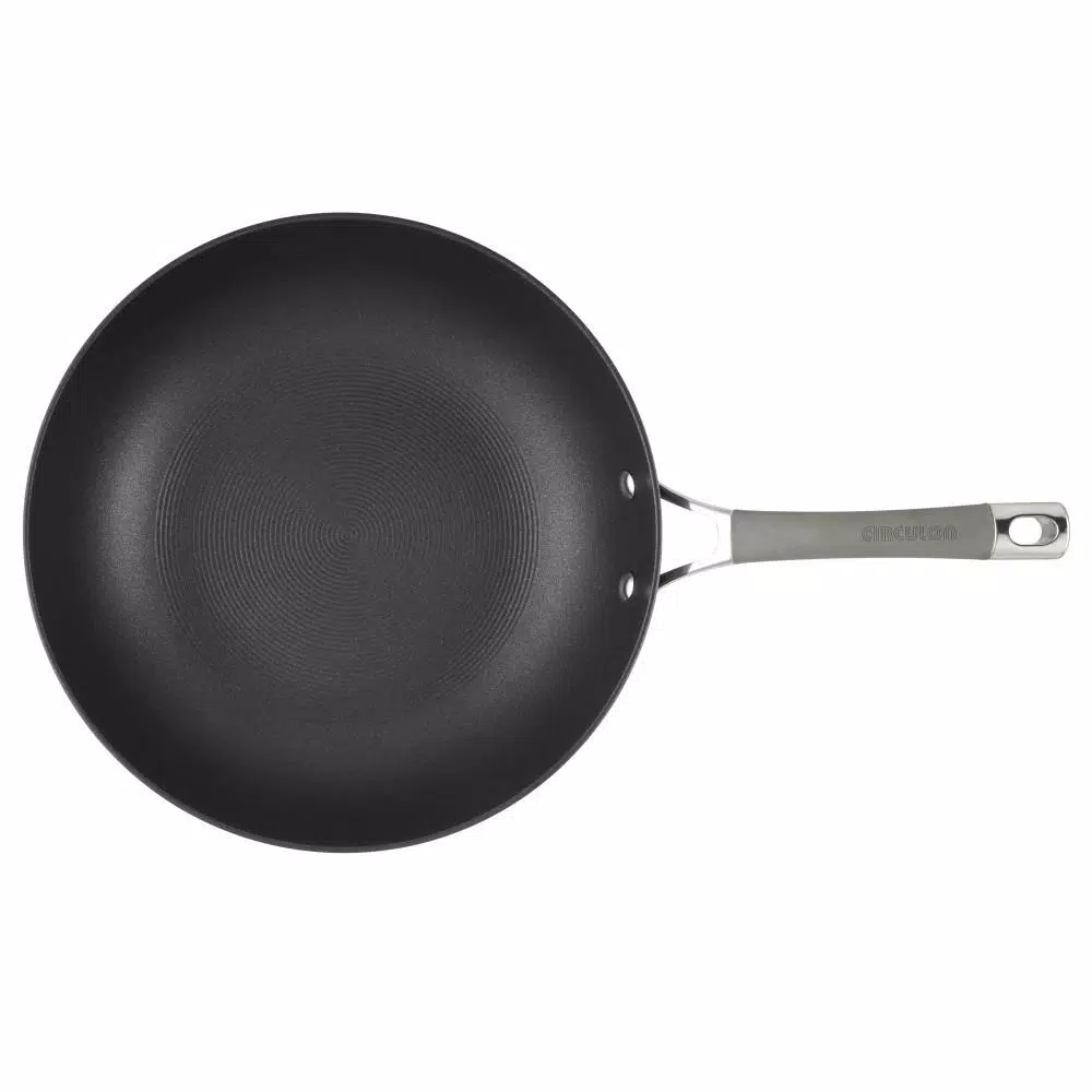 Sizzle and sear a variety of great one-pan recipes with the Circulon Elementum Hard-Anodized Nonstick 12-Inch Stir Fry. This versatile wok is crafted from super-tough, hard-anodized aluminum that’s twice as strong as stainless steel and boasts the TOTAL Nonstick System of raised circles and triple layer, premium quality nonstick for long-lasting food release and easy cleanup. Higher pan walls transfer heat evenly and make it easy to pull together a spicy Kung Pao Shrimp. A dual riveted stainless steel handle with a sleek silicone grip provides a solid, comfortable grasp and is heat safe up to 400 F. PFOA-free, metal utensil safe nonstick inside and out comes in show-stopping oyster gray exterior color while delivering superior food release and super-easy cleanup of even the stickiest recipes like a rich and saucy Beef with Broccoli. Circulon nonstick technology is so advanced, it lasts 10 times longer than ordinary nonstick. That’s why Circulon comes with a Hassle-Free Lifetime Guarantee. For an everyday cooking solution that delivers on the cookware gotta-haves of nonstick performance, even heat distribution, long-lasting durability, and easy cleanup, choose the versatile Circulon Elementum Hard-Anodized Nonstick 12-Inch Stir Fry, because when circles align, your day delivers.