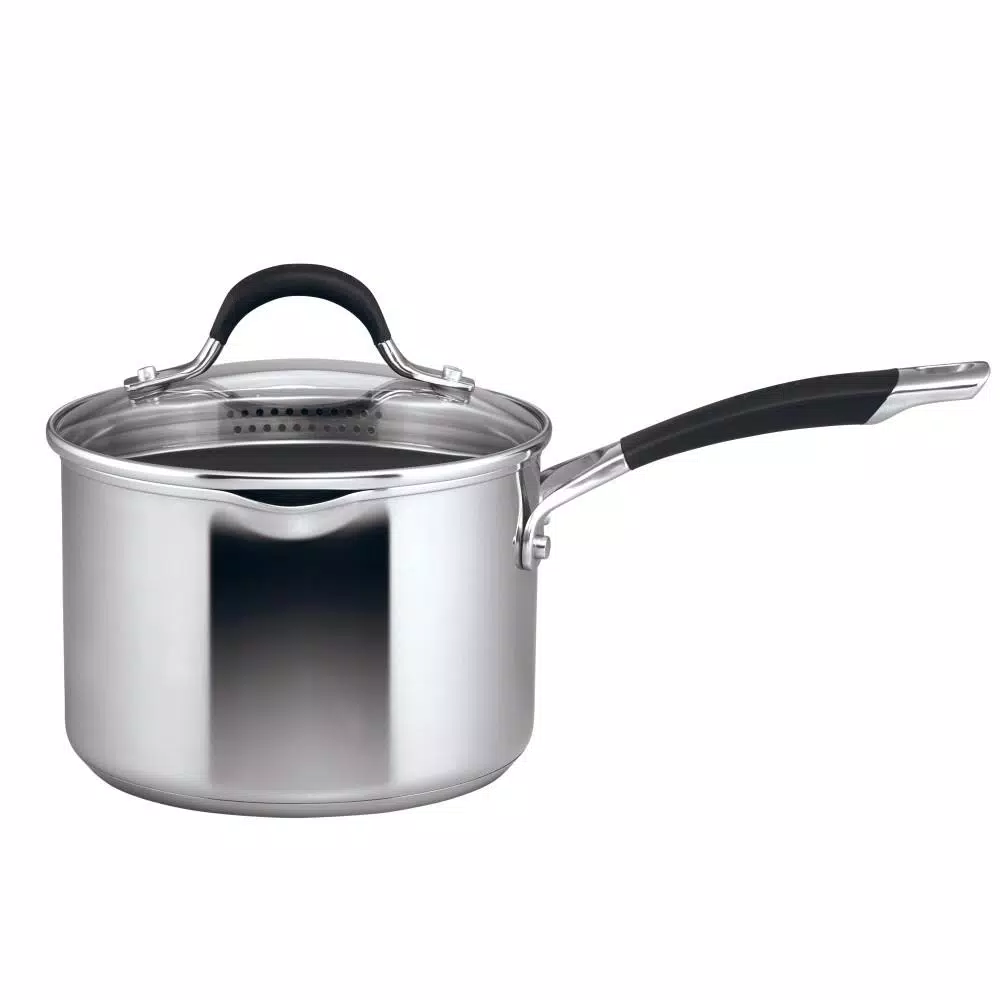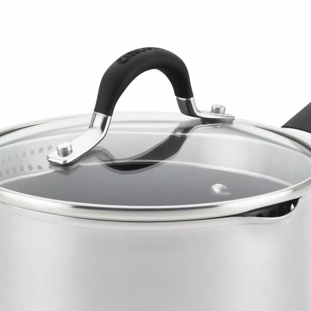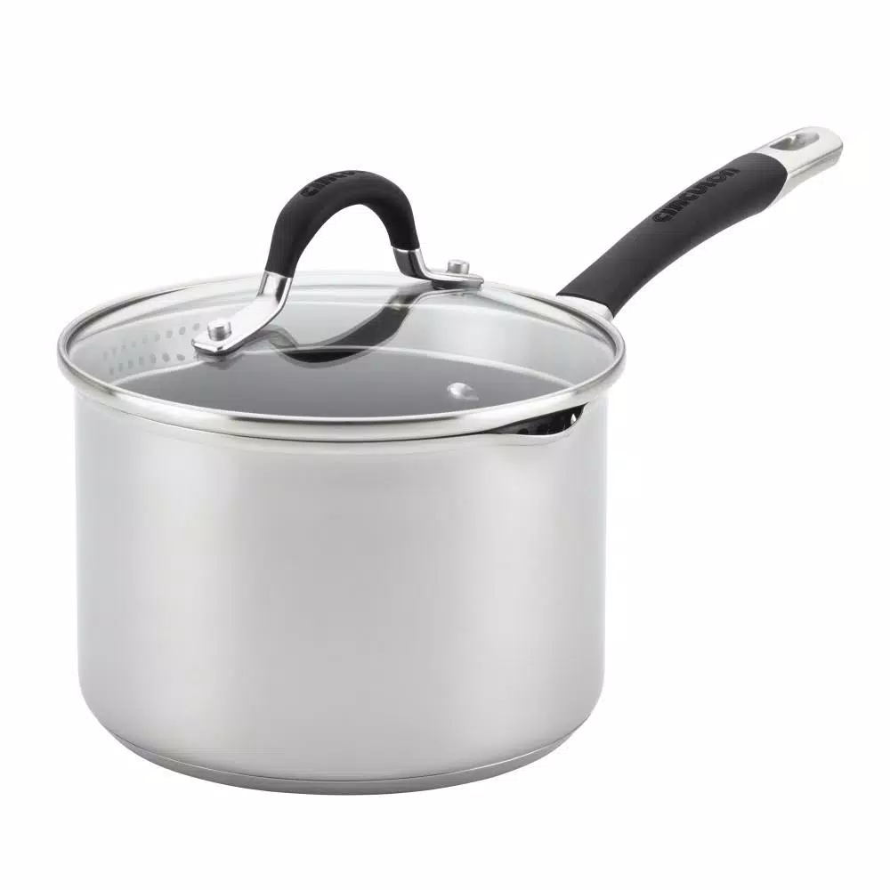 Boost sauce-making and cooking efficiency with a gleam of stovetop style, using the all-range, dishwasher-safe Circulon Momentum Stainless Steel Nonstick 3-Quart Straining Saucepan with Lid. Circulon cookware features the unique, PFOA-free TOTAL Nonstick System with premium metal-utensil-safe nonstick on raised circles, so foods release and cookware interiors clean with ease. This innovative nonstick surface promotes long-lasting resistance to surface scratches, stains, and chips. Finishing details include a pour spout, the silicone-enhanced stainless steel handle double-riveted for confident handhold, and a shatter-resistant glass lid. And the lidβs deep-seated rim features straining holes for draining off cooking liquids. Oven safe to 400Β°F, Circulon Momentum Stainless Steel Nonstick cookware is backed by a Hassle-Free Lifetime Guarantee. Circulon Momentum cookware is engineered with superior nonstick technology and time- and energy-saving convenience. In the cookware base, an aluminum core fully encapsulated with magnetic stainless steel delivers exceptional heating and cooking. And this cookware is suitable for all cooktops, including induction. Whatever your cooking task, need or intention, from basics like quickly reheating a weekday soup lunch or special recipes like holiday gravy, this saucepan delivers dependably and then some. Best of all, the cookware is dishwasher safe for the ultimate in convenient cleanup.