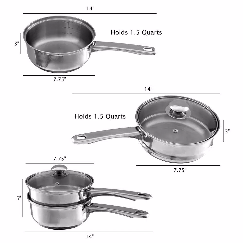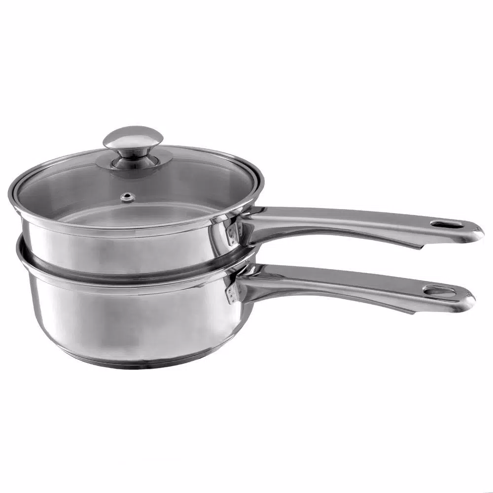 - Includes: bottom saucepan, top pot, and tempered glass lid