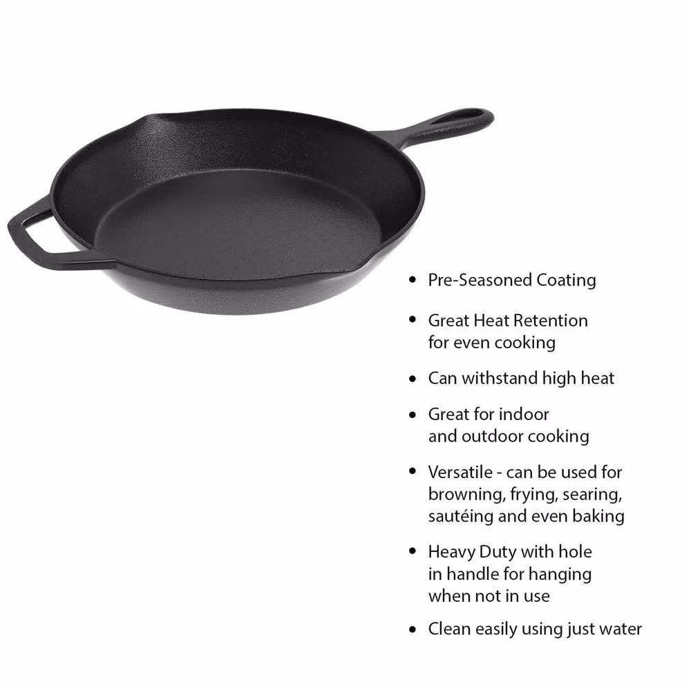 The Classic Cuisine Cast-Iron Skillet can go from stove top to oven and can be used for both indoor and outdoor cooking. Cast Iron retains heat well which results in more even cooking. Great for dinners at home, camping, and much more.