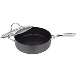 - Hard anodized surface that is durable, heats evenly, and prevents hot spots