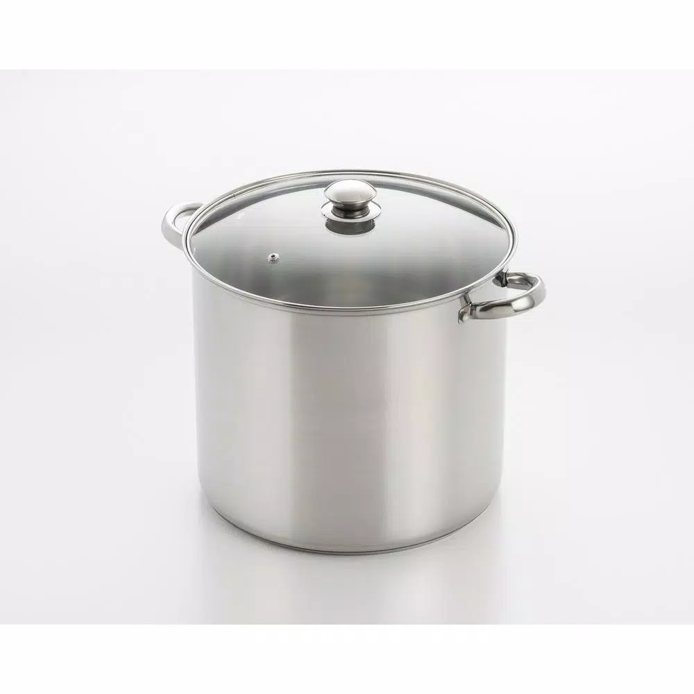 Constructed in stainless steel for durability and encapsulated base enhances faster and even heat distribution. Tempered vented glass lid allows you to monitor cooking. Also features mirror polished exterior with stay cool riveted handles.