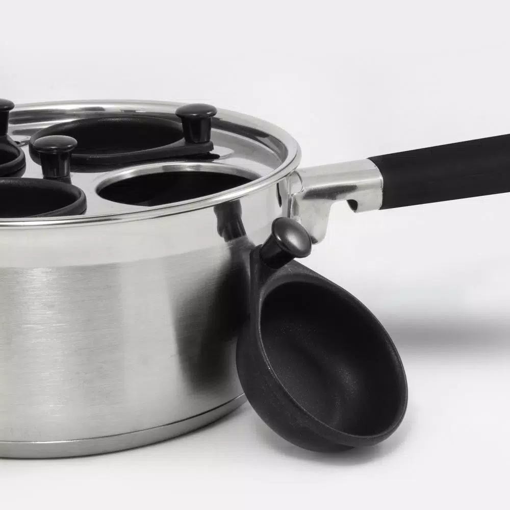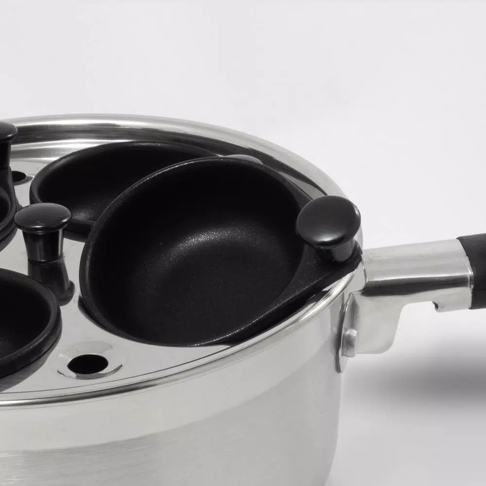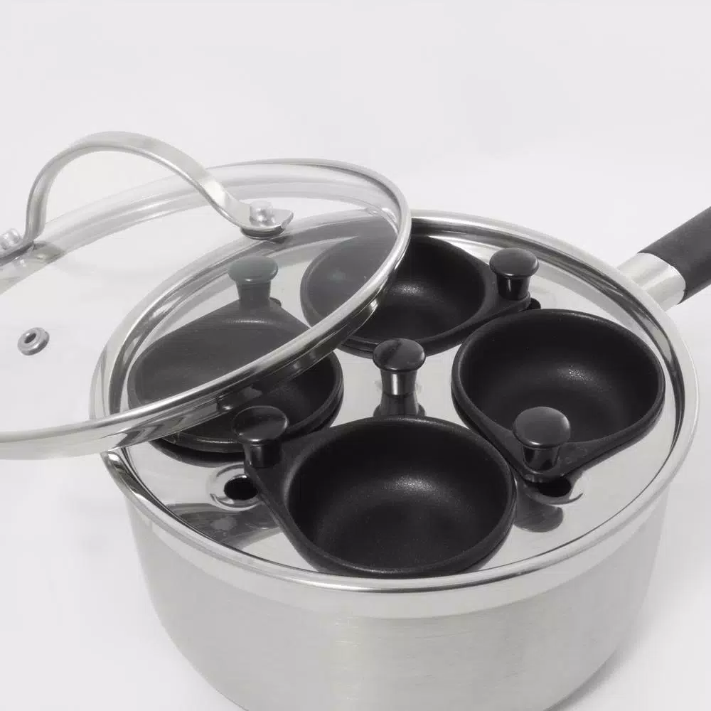 This professional stainless steel egg poacher with non-stick coated egg cups, is perfect for preparing that Sunday brunch. Invite your friends and family over for perfectly poached eggs. Features stay cool handle and knob and a vented glass lid for easy monitoring.