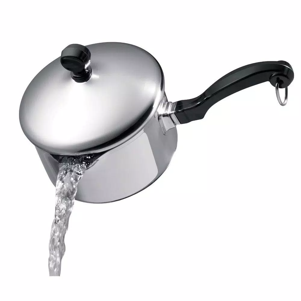 This versatile Farberware Classic Series Stainless Steel Straining Saucepan with Pour Spouts is super-versatile and eliminates the need for a seperate strainer or colander. Farberware has been trusted for over 100 years, and this straining saucepan continues that tradition for a new generation. A full cap base featuring a thick aluminum core surrounded by stainless steel provides rapid, even heating, whether boiling carrots or whisking a holiday gravy. Heavy-duty stainless steel is polished to a mirror finish for a classic touch. For covered cooking, rotate the self-basting lid to close the holes so heat and moisture stay inside the pan. To strain, simply align the lid’s holes with the pan’s pour spouts. The comfortable handle with iconic styling provides a confident grasp, making it easy to pour hot vegetable stock into a bowl or strain water from boiled potatoes. This straining saucepan is dishwasher safe and oven safe to 350°F, and it makes an excellent gift or companion piece to any Farberware collections cookware set. Find modern convenience and timeless style in this Farberware Classic Series Stainless Steel Straining Saucepan with Pour Spouts.