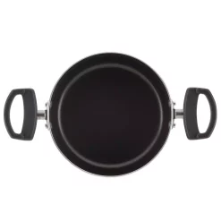 Farberware Cookware always combines stylish construction with great cooking results, and the Farberware Aluminum Nonstick 10.5 Qt. Covered Stockpot is no exception. Aluminum construction helps this Farberware stockpot heat quickly and evenly from base to rim, and the long-lasting nonstick interior provides beautiful food release for seared sirloin cubes, browned chicken, and all the other delicious ingredients in homemade soups and stocks. The capacity is generous enough for a large batch of the family’s favorite stew or soup for a local picnic or potluck. A shatter-resistant glass lid helps hold the heat and moisture inside the covered pot and keeps the cooking visible for reducing broths and other liquids. Farberware cookware has been making cooking shine in home kitchens for years, and this durable stockpot is constructed for years of use. The easy-to-clean exterior brings a dash of style to any kitchen, and because the stockpot is dishwasher safe, cleanup is as simple as can be. The double-riveted side handles are solid for plenty of support and leverage when moving or pouring from the filled pot. Conveniently oven safe to 350°F, this stockpot makes a perfect addition for whenever your own Farberware set can use an extra boost or a fresh piece. Every kitchen needs a sizeable stockpot for stews, soups and more, and the recipe truly begins with the Farberware Aluminum Nonstick 10.5-Quart Stockpot.
