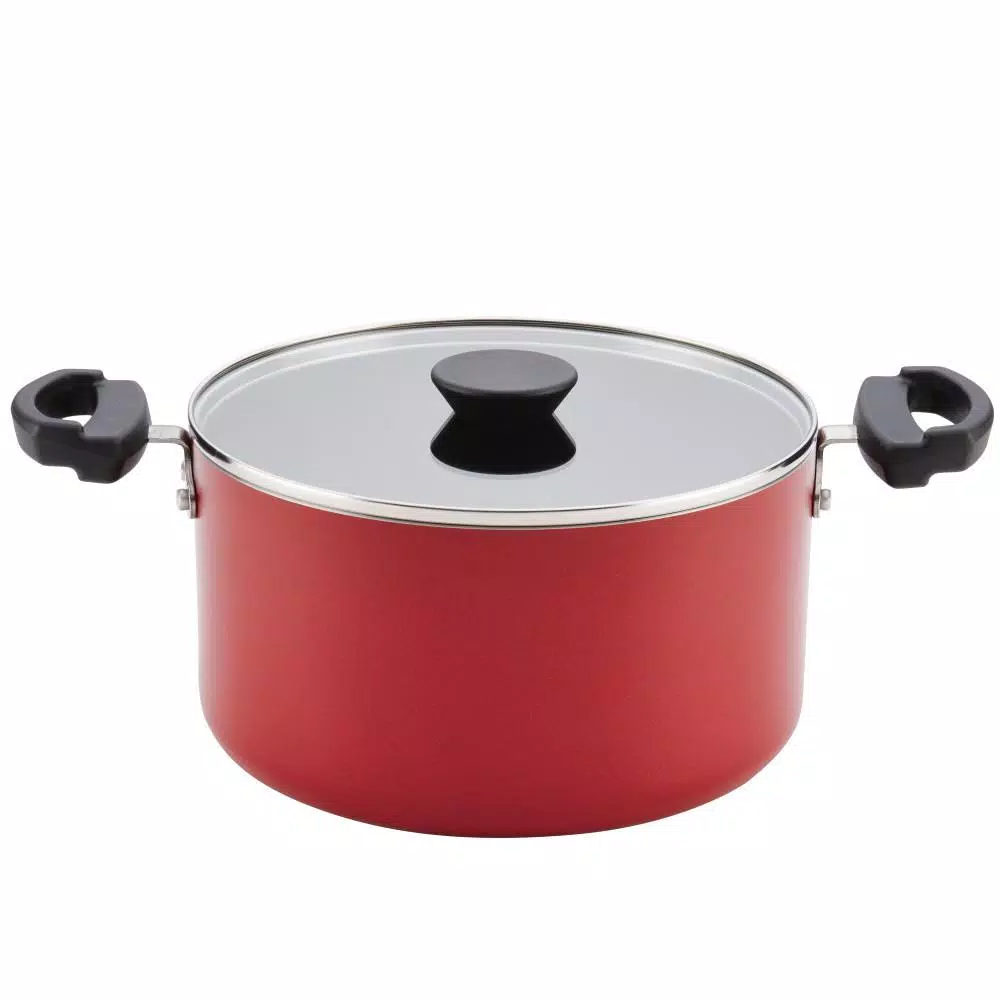 - Enhanced nonstick interior provides excellent food release and super easy cleanup; shatter resistant glass lid seals in heat and moisture and acts as a convenient base when pots are nested