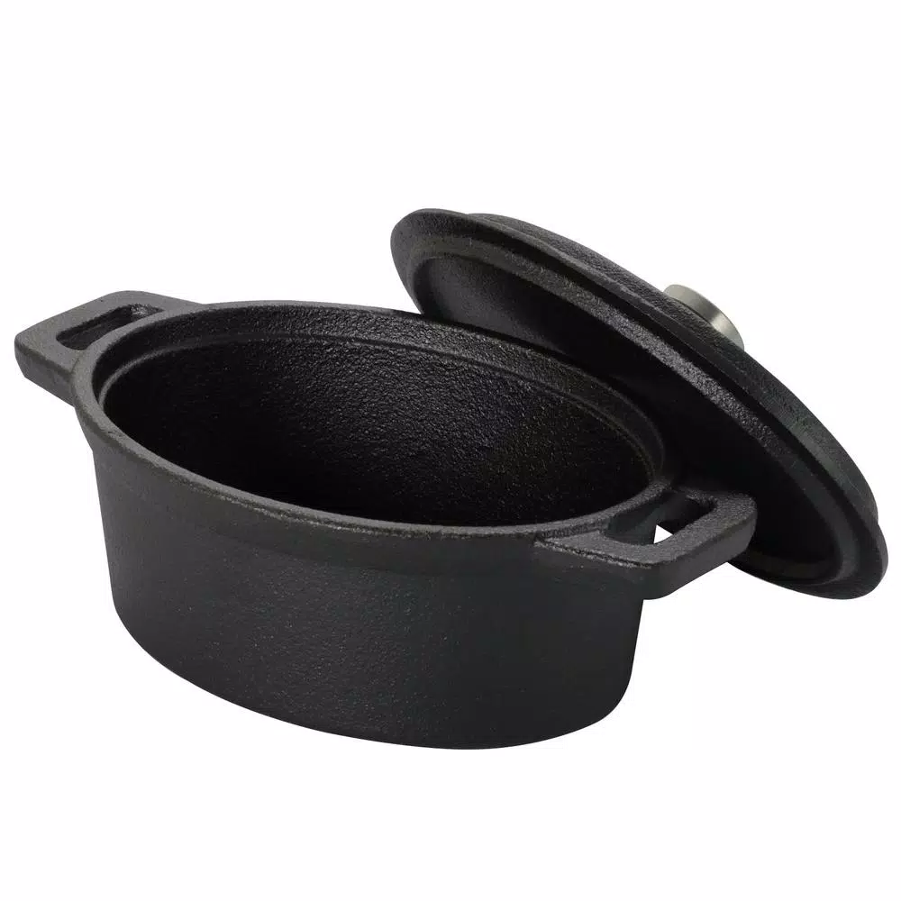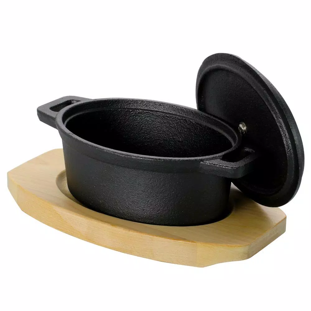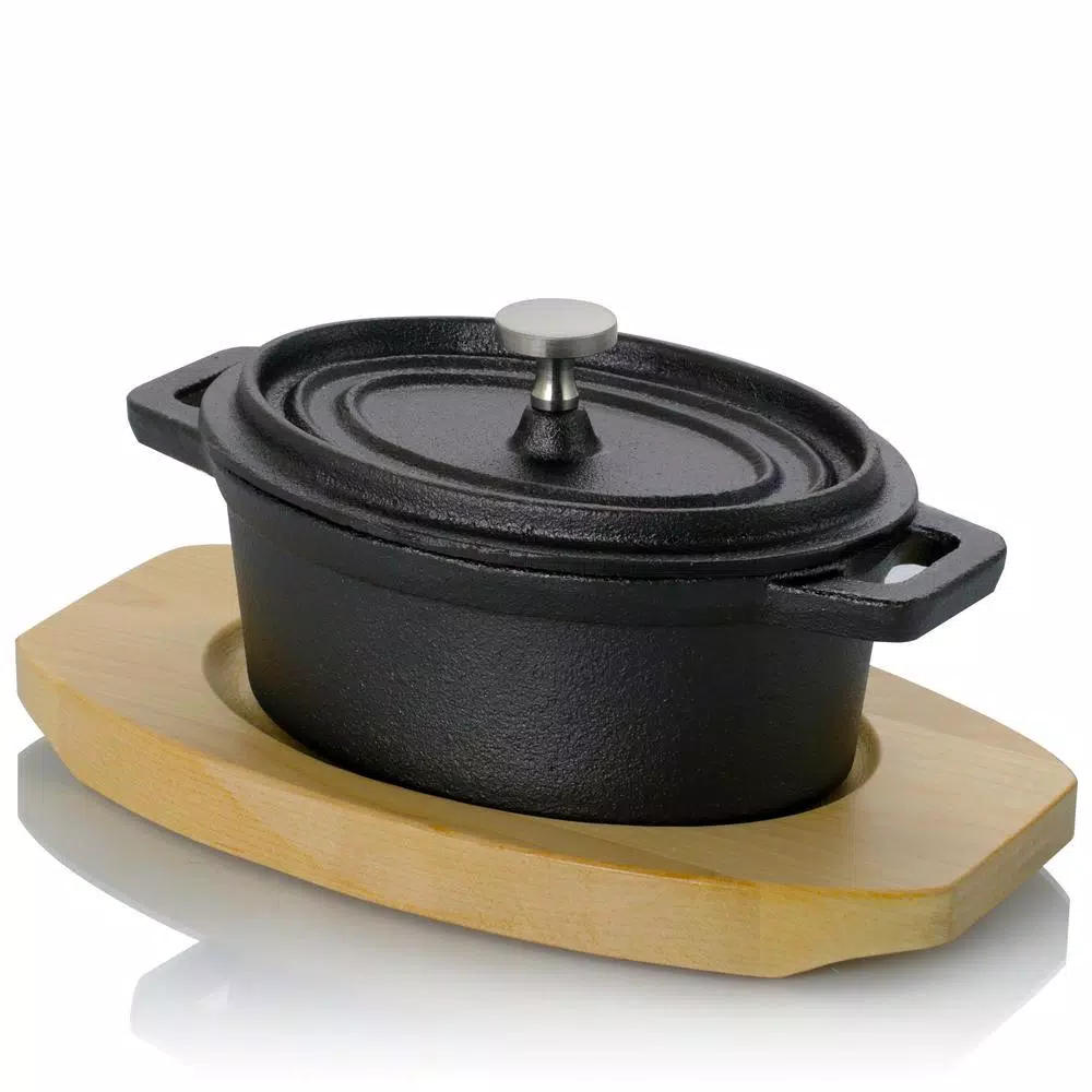 The Gibson Home Campton 0.35 Quart Mini Oval Cast Iron Casserole Dutch Oven with Lid and Wooden Base is great for serving all kinds of personal sized dishes. Bake your favorite mac and cheese or fruit cobbler in this cast iron mini Casserole Dutch Oven pot. The wooden base platter is great for serving straight from the oven and makes for a delightful display.