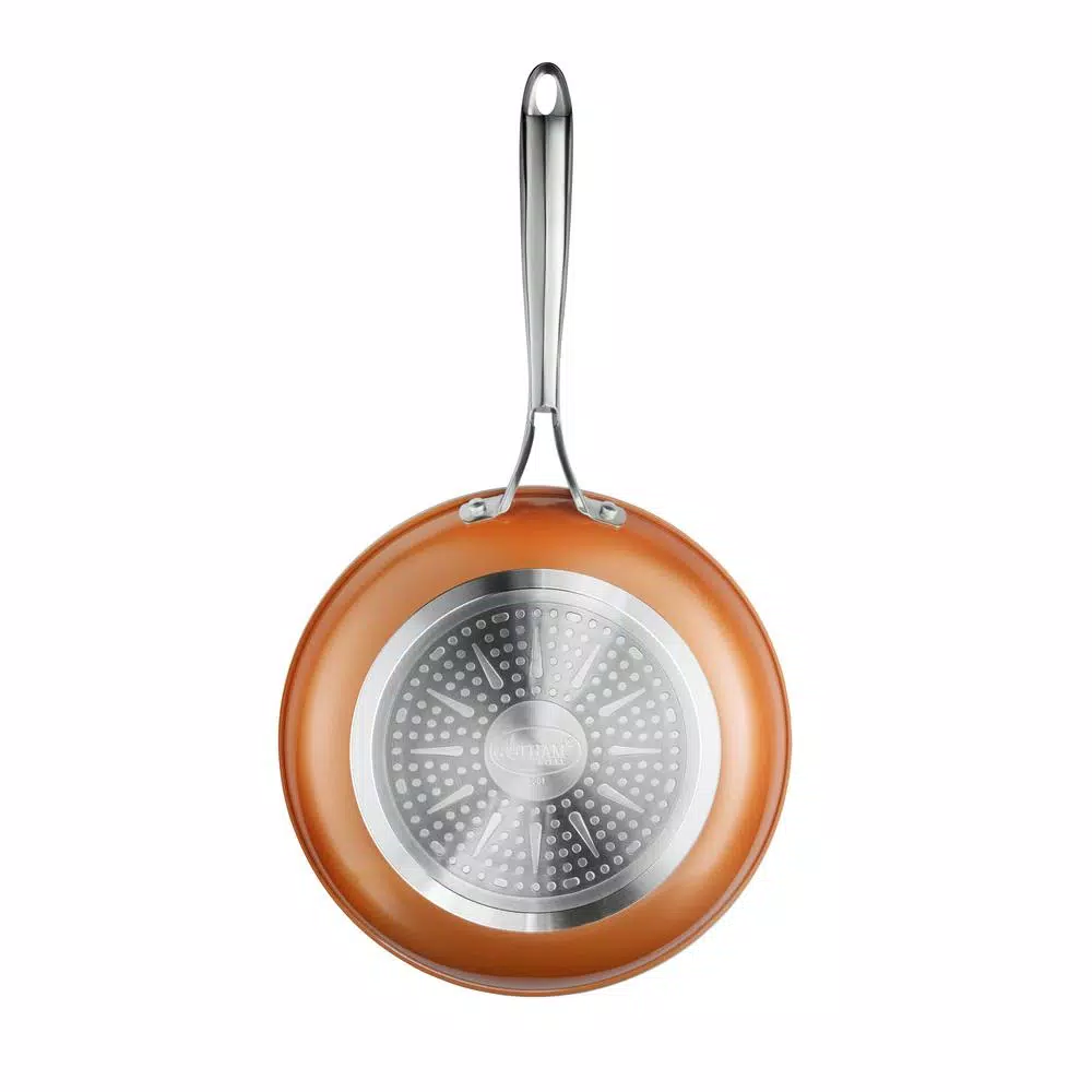 - 12β LARGE FRYING PAN β this nonstick frying pan is a cookβs essential has a wide flat-bottom, nonstick surface and gently sloped sides. Count on it for everything from scrambling eggs and sautΓ©ing vegetables to searing meats, making pancakes and much more.