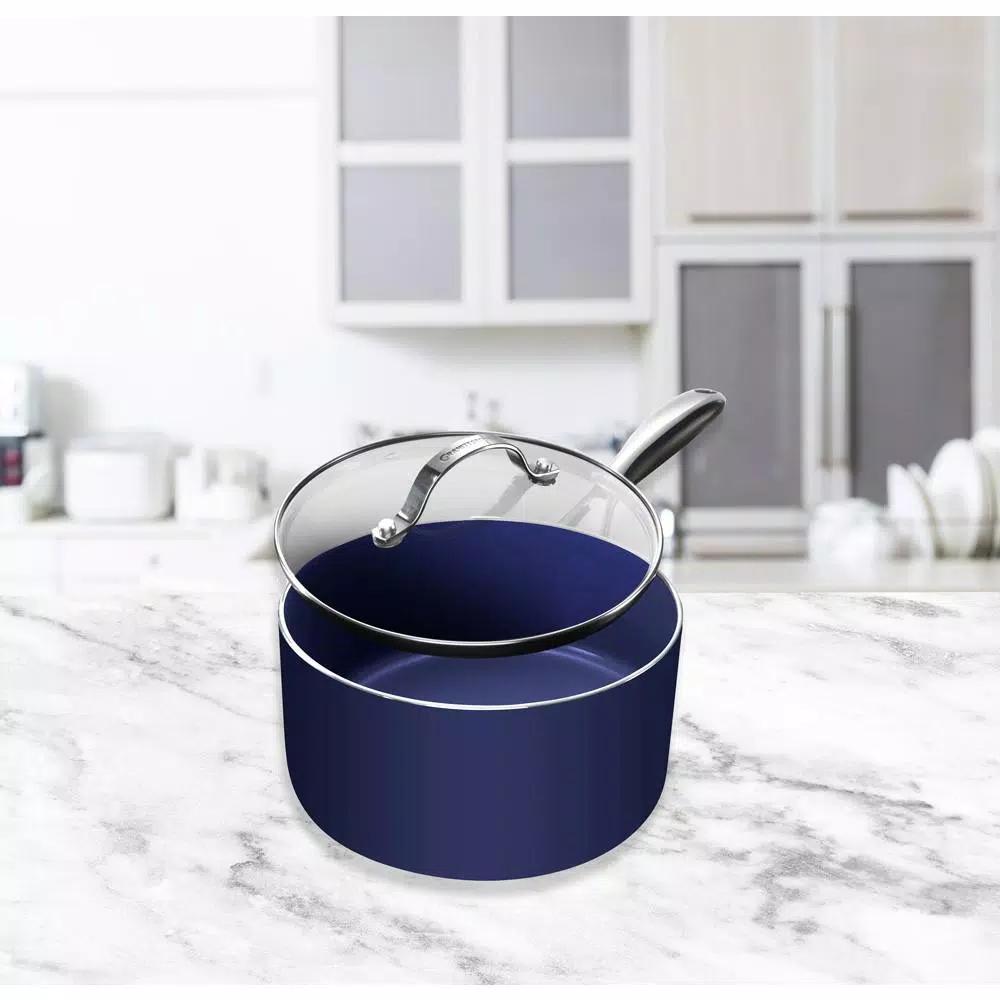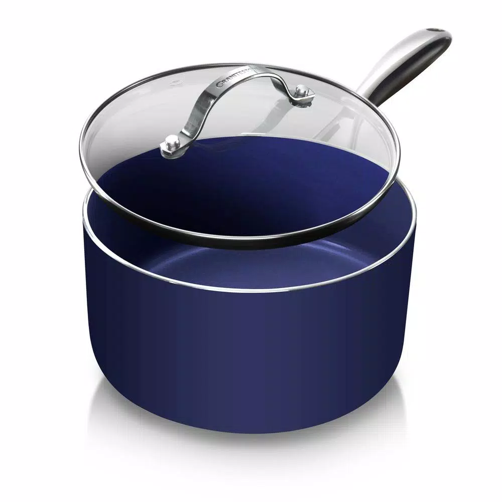 Introducing our new GRANITESTONE Blue Collection. An elegant cookware set that will upgrade any kitchen with itβs rich royal blue color. Pioneering GRANITESTONE cookware features a mineral-infused granite coating that is the perfect blend of nonstick durability & ease of use. The GRANITESTONE cookware is pressed from a single sheet of aluminum and layered 3X with our proprietary coating for the ultimate nonstick experience. Our pans require no butter or oil making healthy cooking easy. The extra thick coating is super durable and is scratch resistant and metal utensil safe.