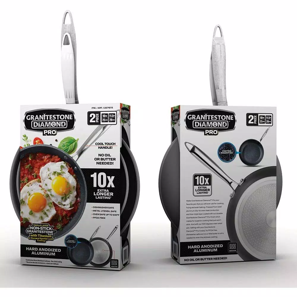 - Includes: 10 in. pro fry pan and 11.5 in. pro fry pan