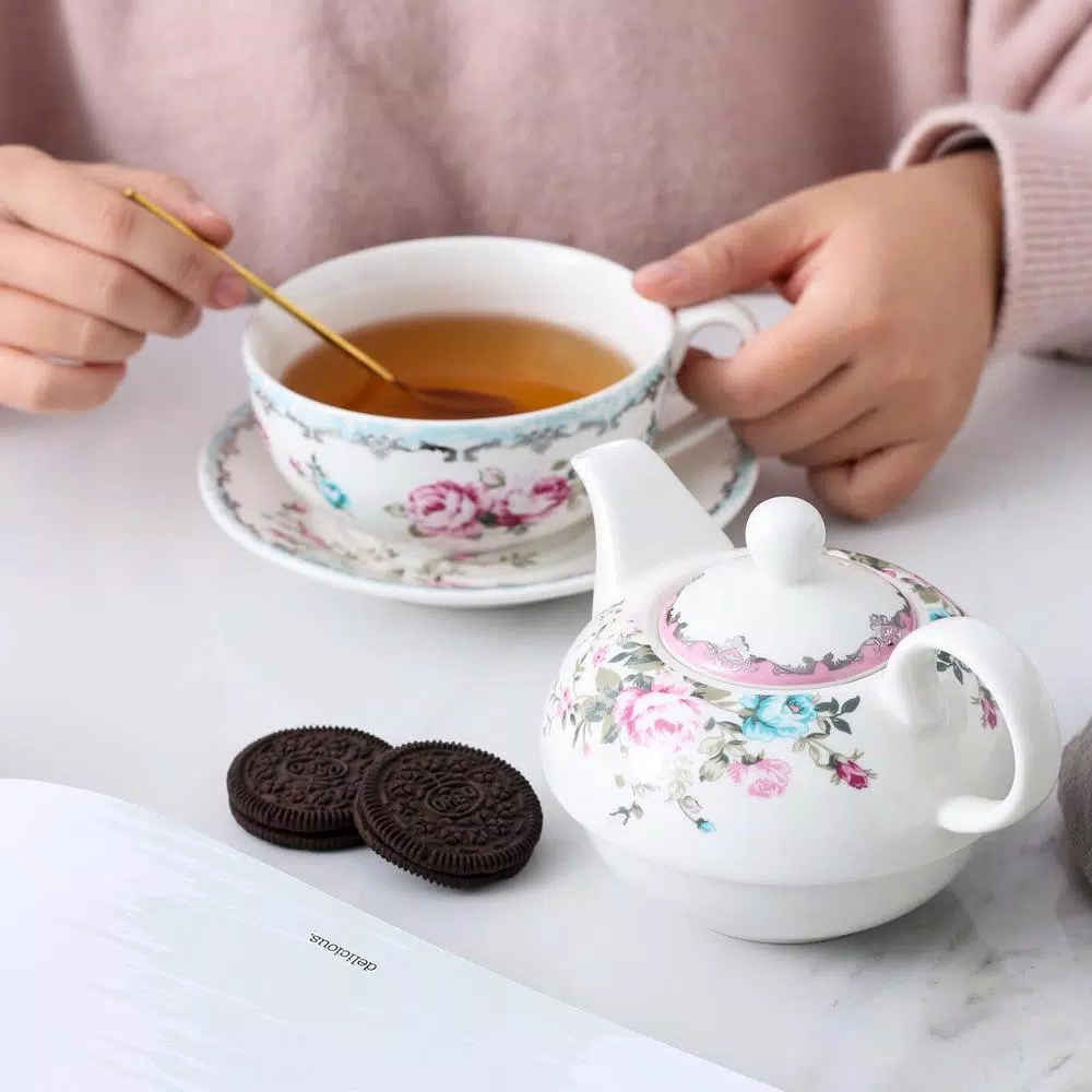 Sip on your favorite coffee or tea while at travel with the use of this excellent MALACASA Porcelain Tea for One Set Teapot Tea Set Teacup and Saucer.