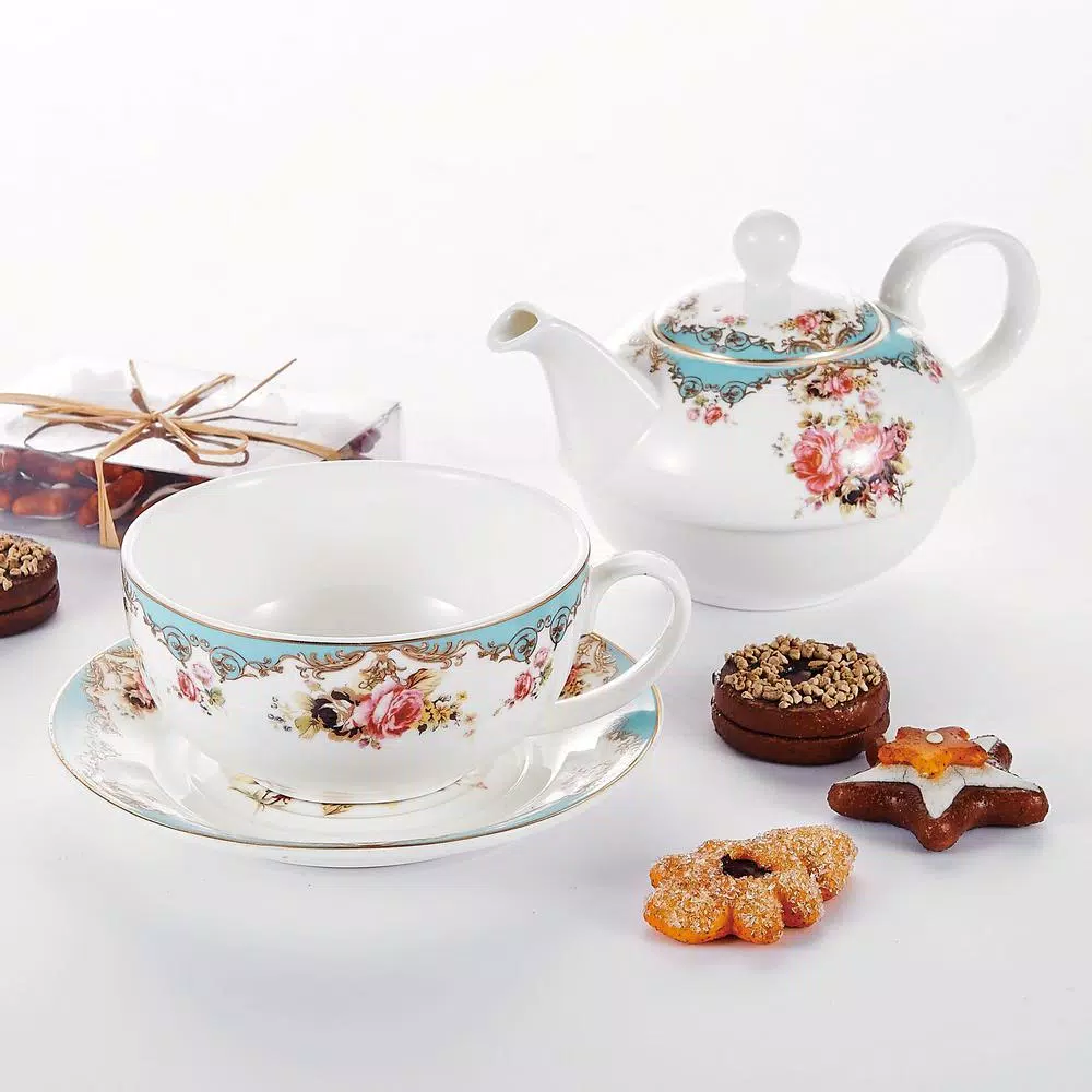 - With elegant great looking, ceramic teapot set for one goes anywhere in any setting to impress your guests and simply add a touch of sophistication to any table With elegant great looking, ceramic teapot set for one goes anywhere in any setting to impress your guests and simply add a touch of sophistication to any table
