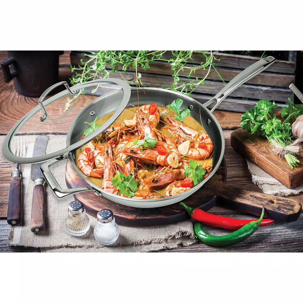 - 3-ply construction: stainless/aluminum/stainless; suitable for all cooktops including induction