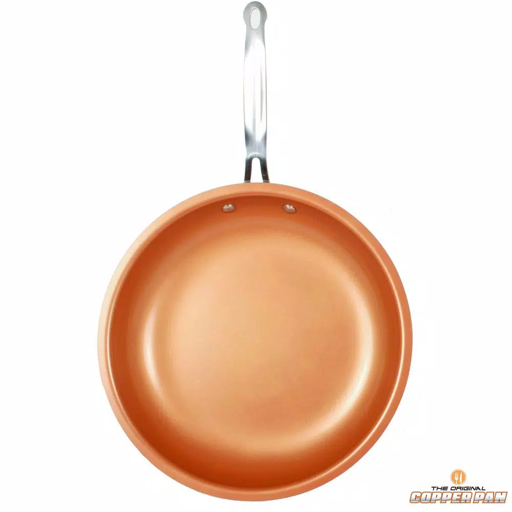 Original Copper Pan non-stick ceramic cookware for todayβs health conscious consumer. Original Copper Pan is made without the use of synthetic chemicals PFOA and PTFE yet even the stickiest foods slide right off with ease. Fry eggs, flambe desserts, broil savory flaky fish and even caramelize sugar without the need to butter, fat or oil. Versatile enough to be used on the stovetop or oven while withstanding up to 500Β°F temperatures, Original Copper Pan is the versatile non-stick pan for all your cooking needs. Available in both 10 in. or 12 in. Dishwasher-safe and scratch-resistant surface will provide you with years of dependable service.
