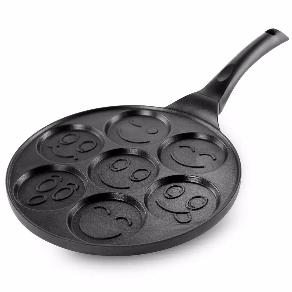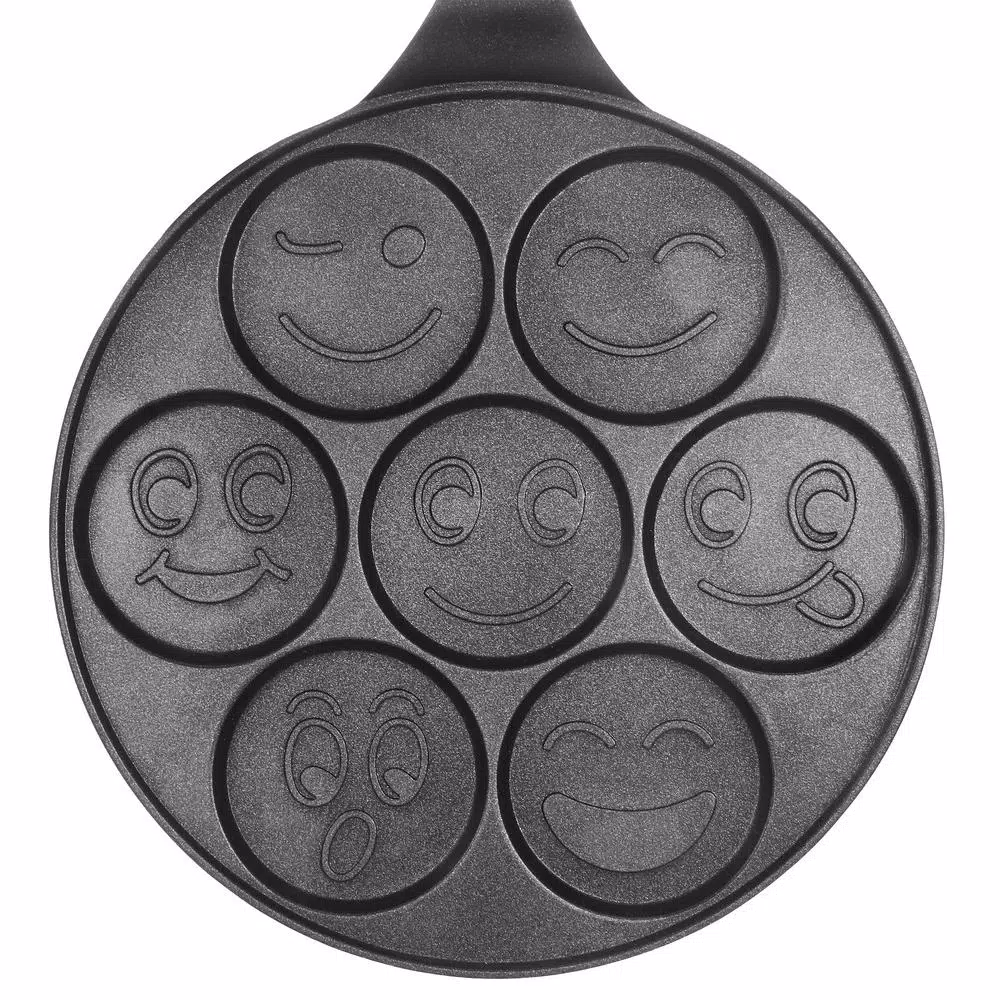 The MegaChef Smiley Face Pancake Pan will bring a smile to your face with the silly Smiley Face Pancake Pan. Created to design your morning meals into happy treats. Our pan contains seven different smiley faces that your child will love. Make breakfast a more enjoyable and happier experience.