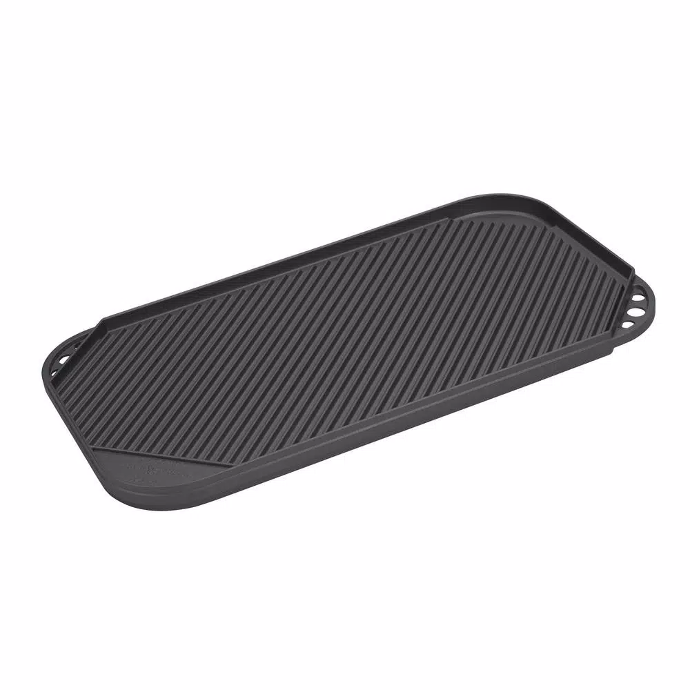 - Reversible griddle offers flexibility of frying on flat side and grilling on ribbed side
