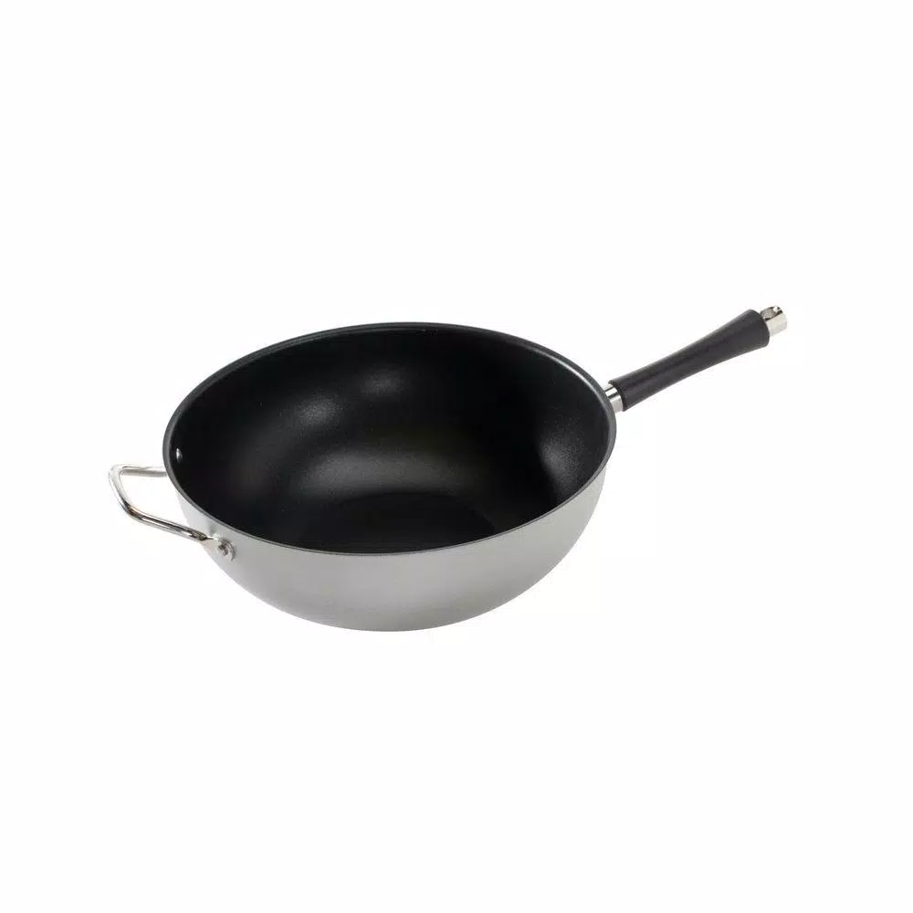 Woks are the go-to item in the kitchen for simple preparation of stir-fried vegetables, meats and noodles. In a wok, endless combinations of ingredients can be used to quickly stir together a healthy meal. Rangeware 12 in. Big Bowl Wok is a high-sided nonstick pan with a flat bottom design, with 7 Qt. capacity. Rests securely on burner for maximum efficiency. Constructed of heavyweight aluminized steel, large capacity pan offers fast heating for stir fry cooking. Performs well on glass, gas or induction stoves. Bakelite, oven-safe handle and stainless-steel helper handle.