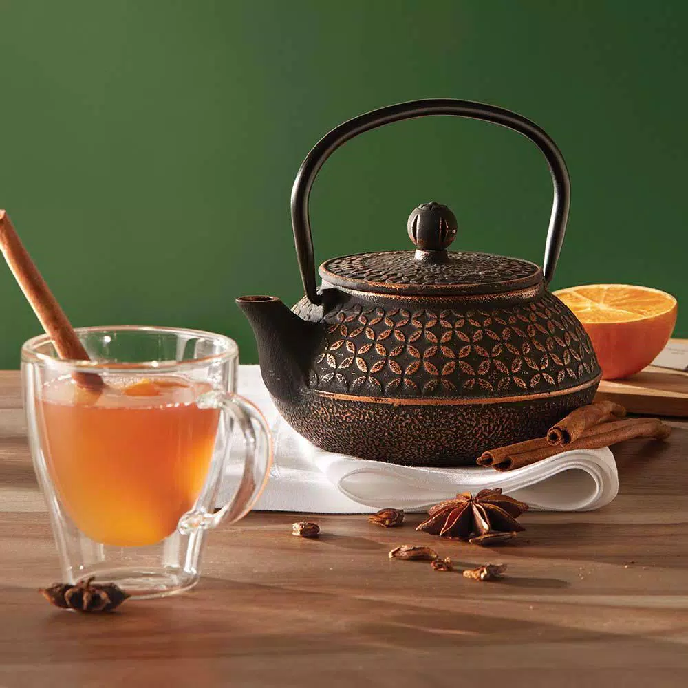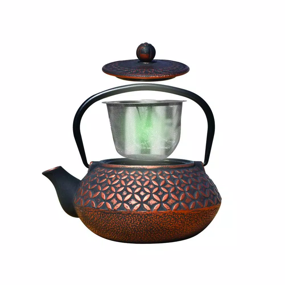 Unity โAmaiโ Black and Copper Tetsubin Teapot. The โAmaiโ Teapot is an elegant Cast Iron Tetsubin teapot inspired by highly prized Japanese antique teapots still in use today. The enamel lined interior makes it rust-resistant and easy to clean. For brewing and serving tea; Not intended for stovetop use.
