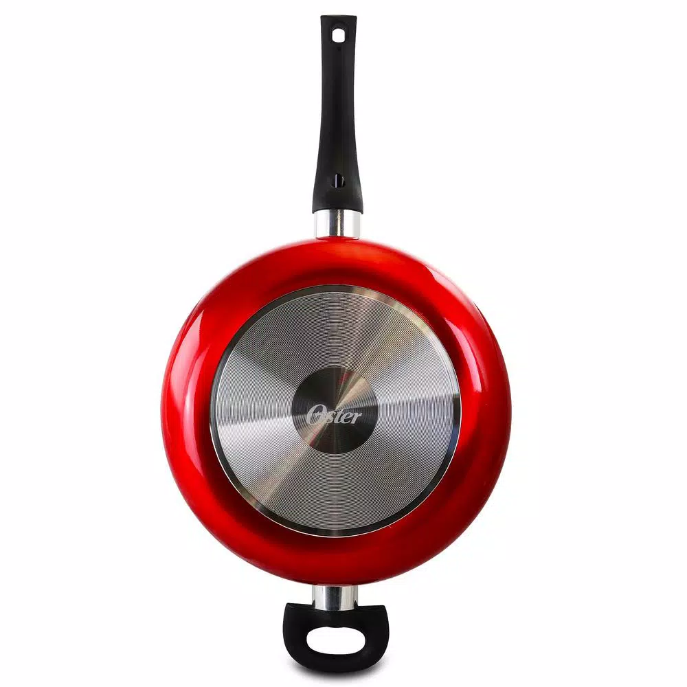 The Gibson Oster Merrion 3.5 Qt. Nonstick Aluminum Saute Pan with Glass Lid in Red lets you Whip up delicious meals for your family and friends. The non-stick coated interior allows for healthier cooking as it requires little to no fat, and the food will slide right off the pan, making cleaning a breeze. The Bakelite handles remain cool to the touch to prevent burns and scalds. For added convenience, you can quickly monitor the cooking process through the vented tempered glass lids.