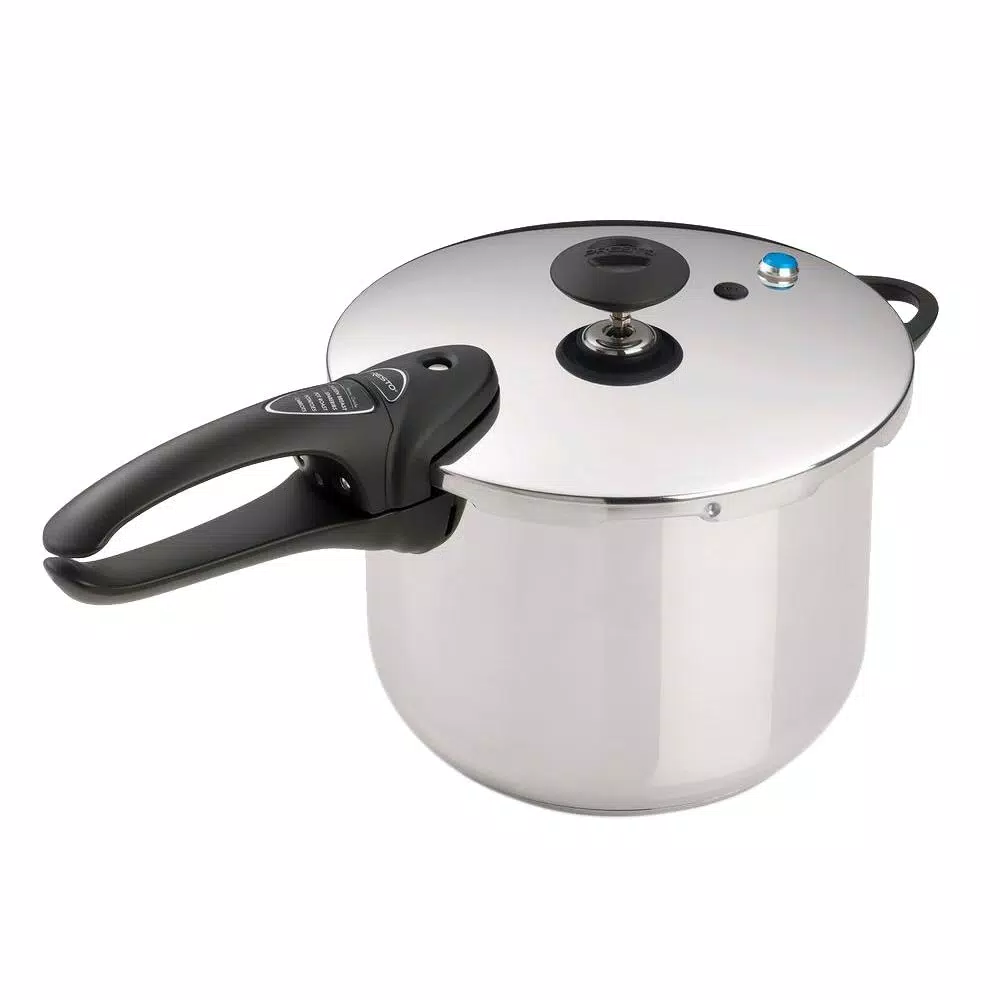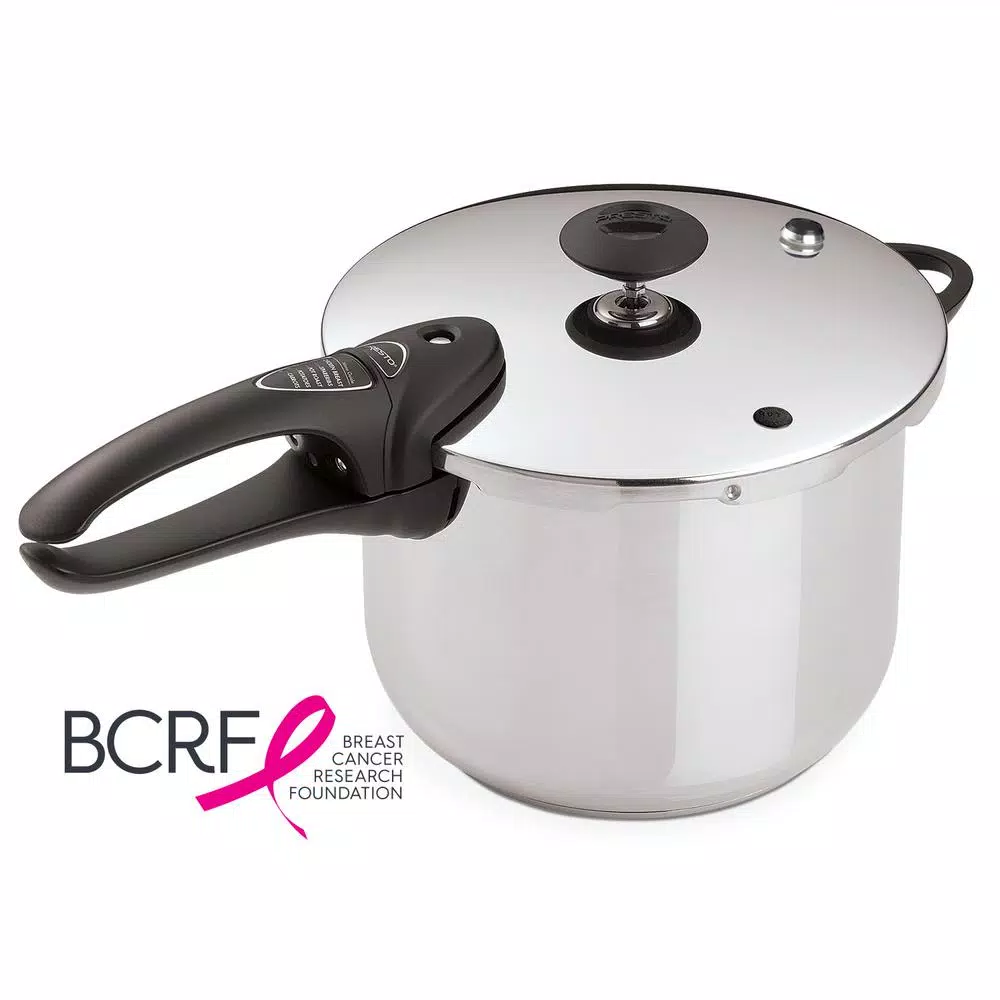 Cooks foods 3 to 10 times faster than ordinary cooking methods, saving time, energy and money. Long-lasting stainless steel with tri-clad base for quick, even heating and easy cleaning. With this Purchase, $5.00 is being donated to The Breast Cancer Research Foundation. High-speed pressure cooking preserves flavors and nutrients. Cooks chicken, fish, meat and vegetables to perfection, even tenderizes economical cuts of meat. Pressure regulator automatically maintains the proper cooking pressure. Multiple protective features include independent pressure release devices that prevent excess buildup in the cooker and a cover lock that keeps the cooker from being opened until pressure is safely reduced. Stainless steel rack included for cooking several foods at once with no intermingling of flavors. Includes easy-to-follow instructions and delicious recipes. Ideal for use on gas, electric, smooth-top and induction ranges. Fully immersible and dishwasher safe.