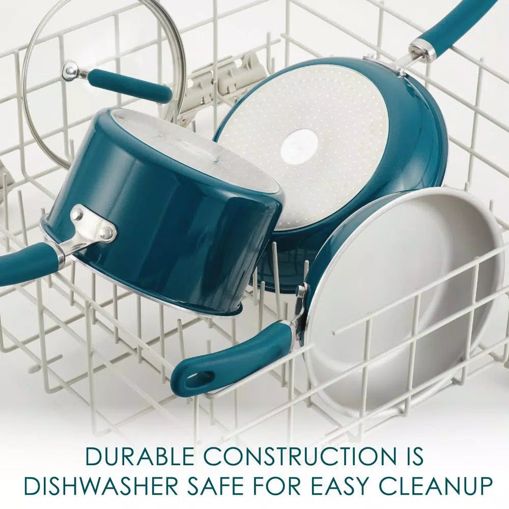 Get ready to wok and roll with the radiant and solution-oriented Rachael Ray Create Delicious Aluminum Nonstick 14.25-Inch Wok.Featuring vibrant, shimmering color combined with value-driven functionality, this versatile wok is perfect for Cashew Chicken or Kung Pao Shrimp and features durable aluminum construction for ultra-even heating. The enhanced PlatinumShield Technology silver nonstick is reinforced to be 9 times harder than titanium for effortless food release of everything from stir fries to scrambled eggs to Rachβs Pineapple Ham Fried Rice.Colorful, double-riveted stainless steel and silicone handles provide comfort and control thatβs oven safe to 400F, flared cookware rims make for easy pouring, and an induction-suitable stainless steel base provides strength, durability, and versatility to use the cookware on any stovetop. Plus, the pan is dishwasher safe for quick and easy cleanup.From dishwasher-safe convenience to the enhanced durability of PlatinumShield nonstick, reach for the easy brilliance of the Rachael Ray Create Delicious Aluminum Nonstick 14.25-Inch Wok and get ready to get your stir fry delish.