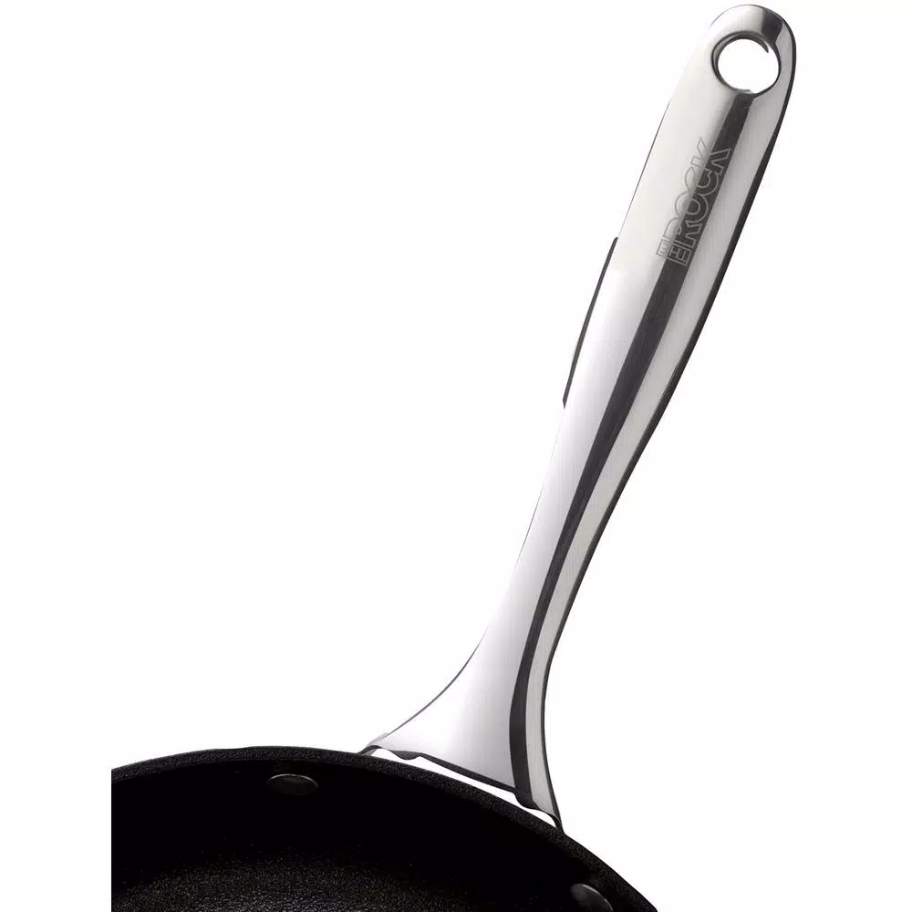 Enjoy ultimate scratch resistance with this THE ROCK by Starfrit 034721-004-0000 9.5 In. Diamond Fry Pan! It features a black diamond coating and is made of extra-thick forged aluminum. It also boasts Starfritβs patented Rock.Tec technology.