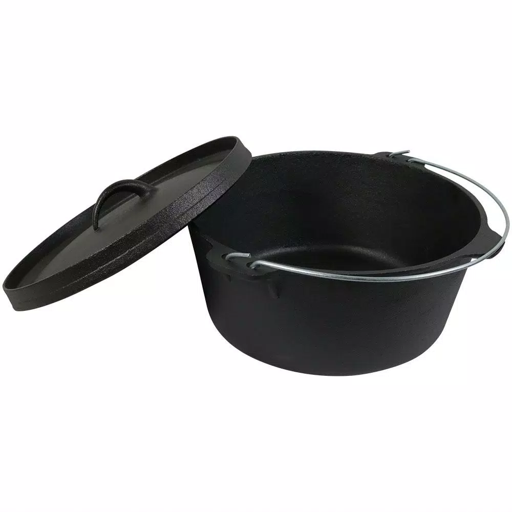 - Durable cast iron Dutch oven evenly disperses its heat to ensure all food is cooked thoroughly, the inverted lid may also be used as a griddle
