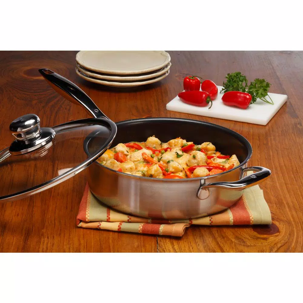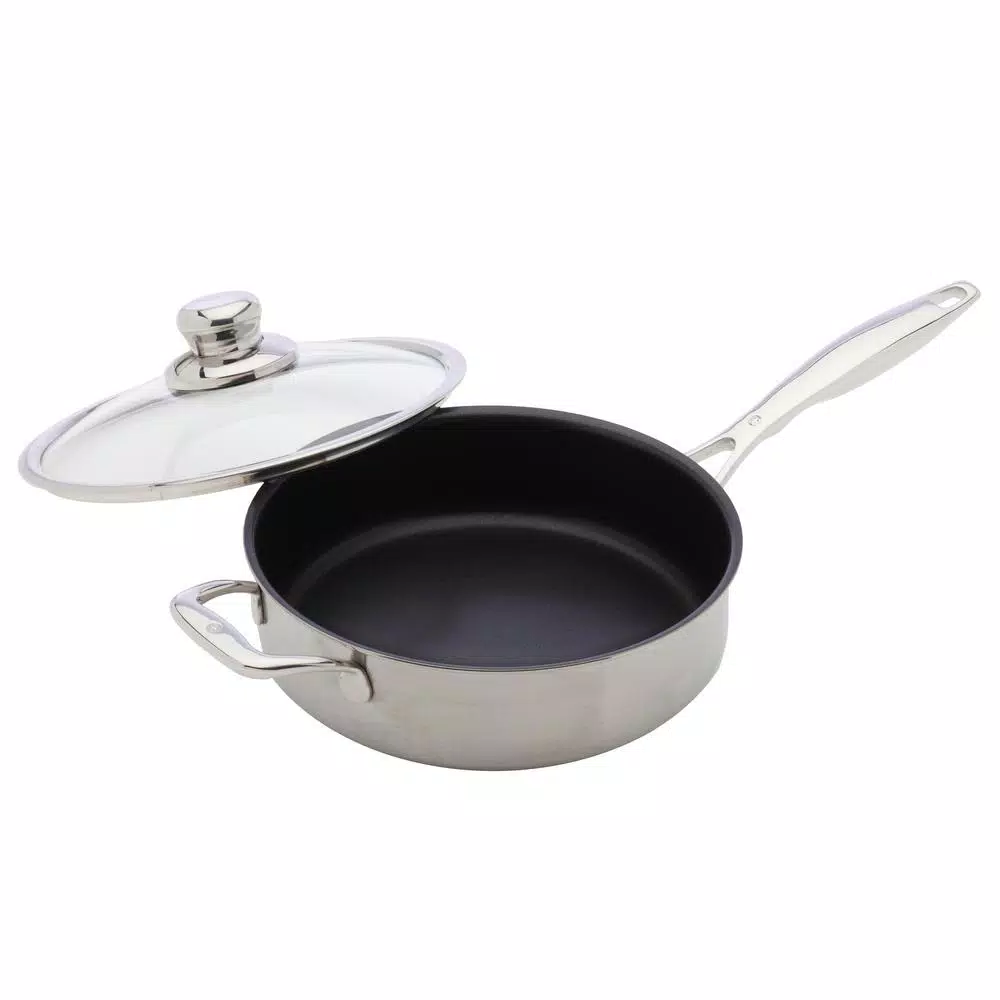 - Includes one non-stick clad 3.1 Qt. saute pan with lid