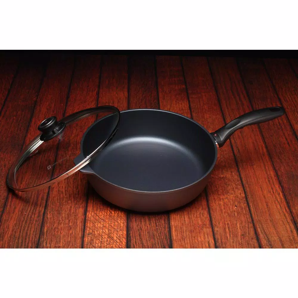 This versatile item is a dream come true for any cooking enthusiast. Swiss Diamondβs 4.3 Qt. (11 in.) Saute Pan is perfect for meat, vegetables, sauces, and more. The high-quality cooking surface contains real diamond crystals allowing foods to slide off easily and ensuring a lifetime of easy clean-up. The ergonomic handle is designed for comfort and balance and attached without interior rivets to prevent harmful bacteria build-up.
