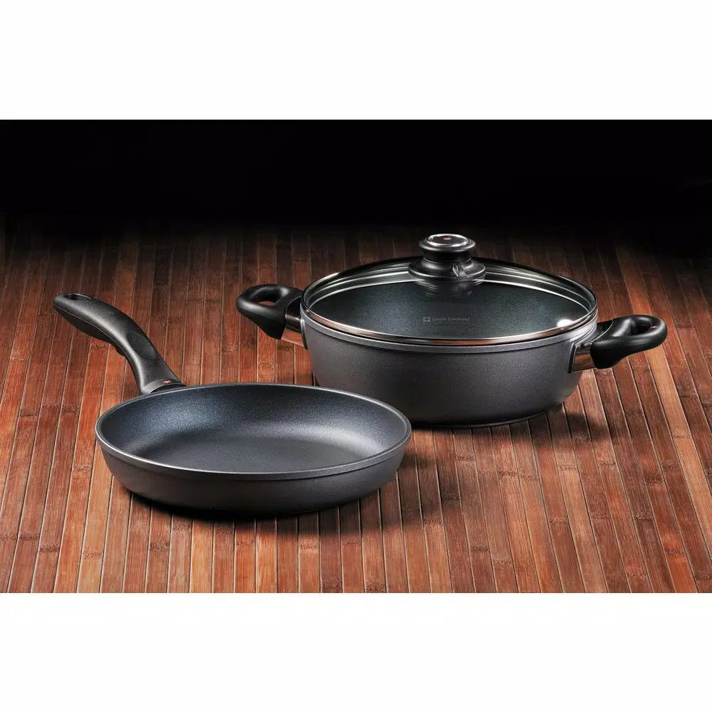 This Swiss Diamond cookware set is perfect when itβs time to whip up tasty meals for family and friends. This set has all of the necessary cookware for a housewarming gift or wedding present. Itβs perfect for preparing some of your favorite meals, from lamb burgers with garlic-yogurt sauce to blueberry French toast.