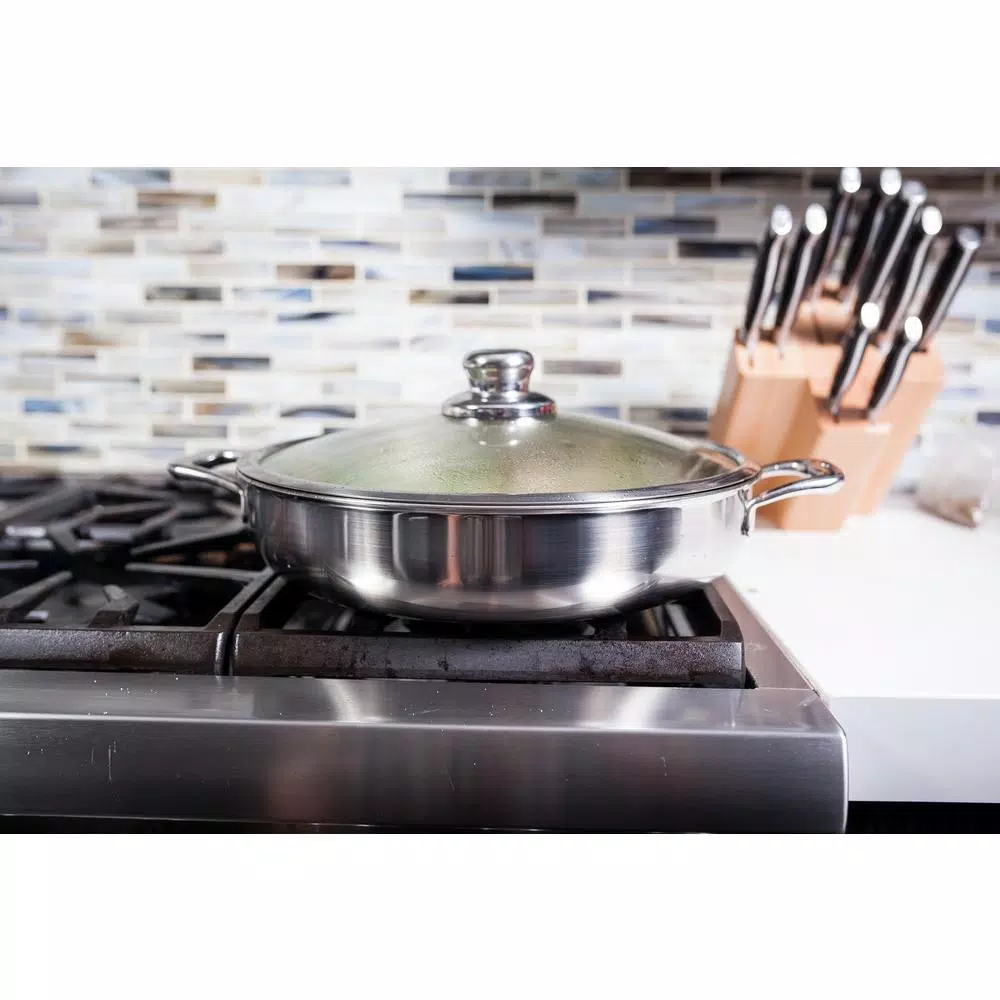 Combining the design elements of a fry pan, saucepan and a wok, the Premium Clad Chefs Pan is extremely versatile and effortless to use. Welded cast stainless steel handles are ergonomically designed to fit comfortably in your hand and wonβt loosen up over time. Maintaining a beautiful satin exterior finish from top to bottom, you can cook your favorite recipes in style.