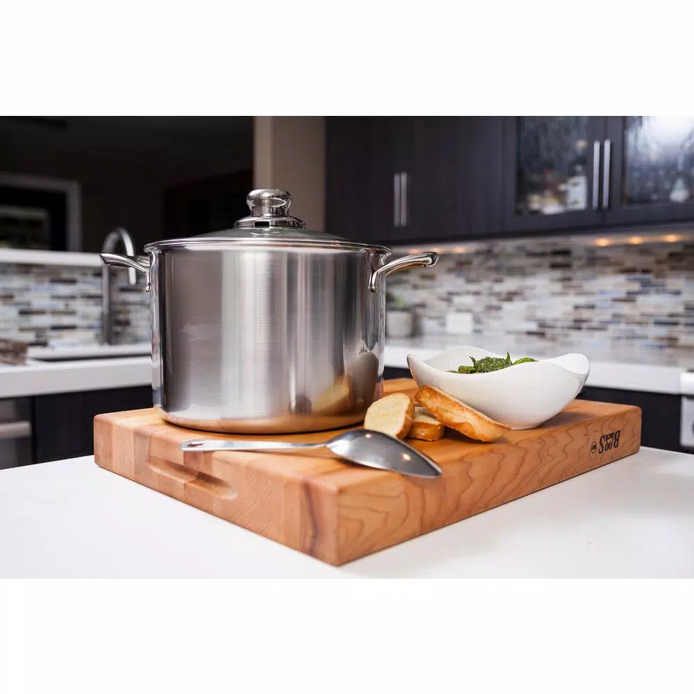 Every kitchen needs a stockpot, so why not have the best. The Premium Clad 7.9 Qt. Stock Pot with Lid is durable and makes entertaining effortless. The unique, bonded 5-layer construction provides even heat distribution with no hot spots and an extremely durable base.