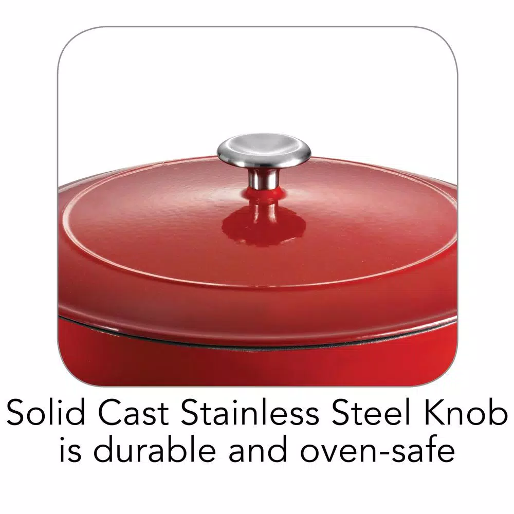 - Enameled solid cast-iron offers superior and even heat retention while vibrant gradated porcelain-enamel exterior offers contemporary styling; part of the Tramontina gourmet edition, a series of prodcuts crafted especially for the cooking enthusiast