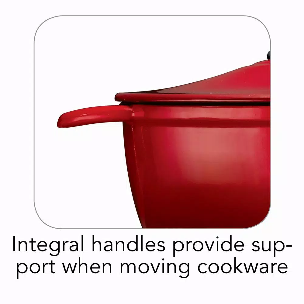 - Enameled solid cast-iron offers superior and even heat retention