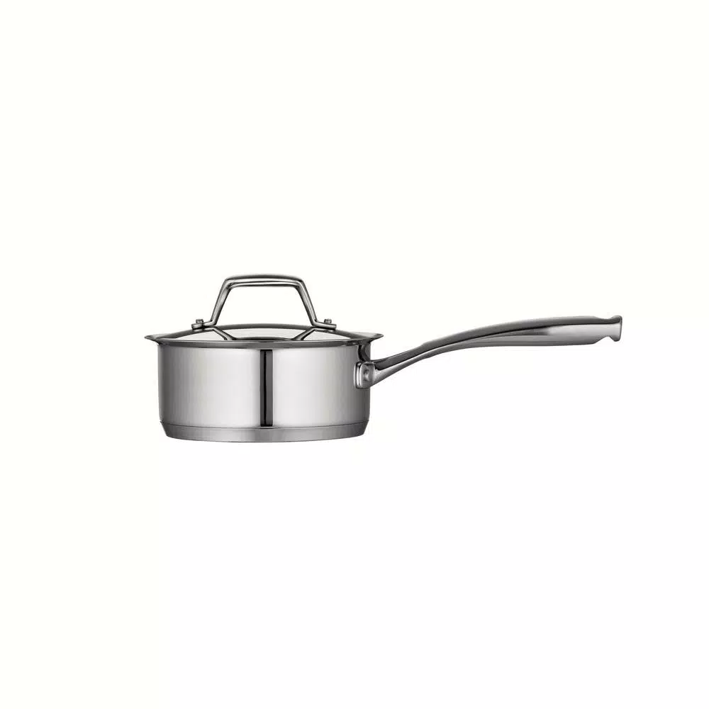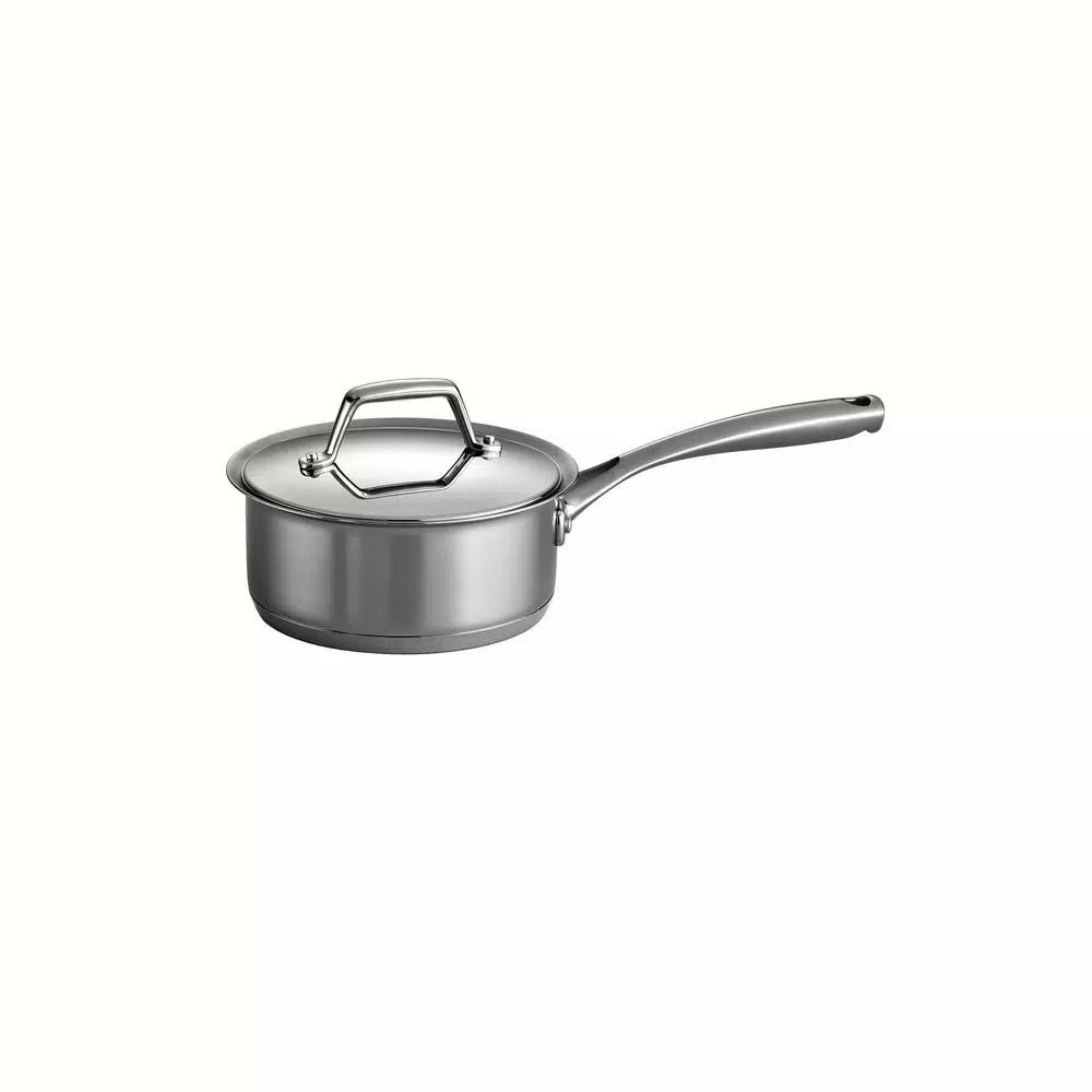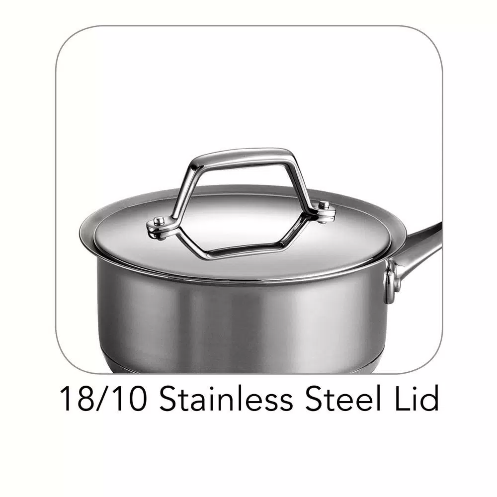 A sleek appearance, superior durability, and high performance make Tramontinaβs Prima 1.5 Qt Covered Sauce Pan an essential addition to home and professional kitchens alike. Handy for cooking comfort soups and signature sauces for small parties, this one can be used on any cooktop β including induction β and in the oven. The Prima Sauce Pan is elegantly styled with a tri-ply base impact-bonded with a pure aluminum core between a layer of 18/10 stainless steel and a layer of magnetic stainless steel, providing even heat distribution. As an added detail, its modern lines feature a flared edge for easy and dripless pouring, a precision-fitted 18/10 stainless steel lid to lock in heat and nutrients, and cast stainless steel handles that are riveted for superior strength.