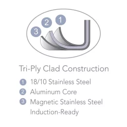 - Tri-ply encapsulated impact-bonded base distributes heat evenly