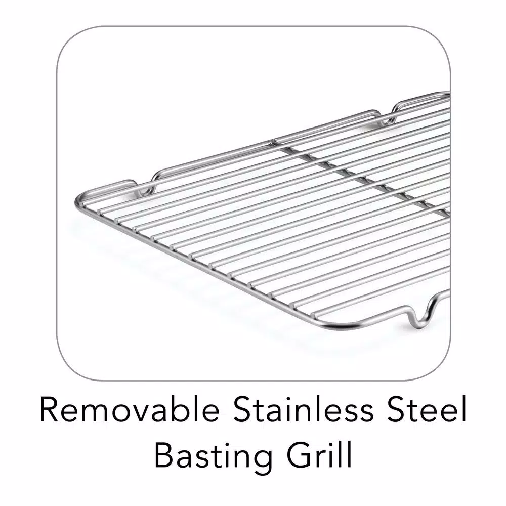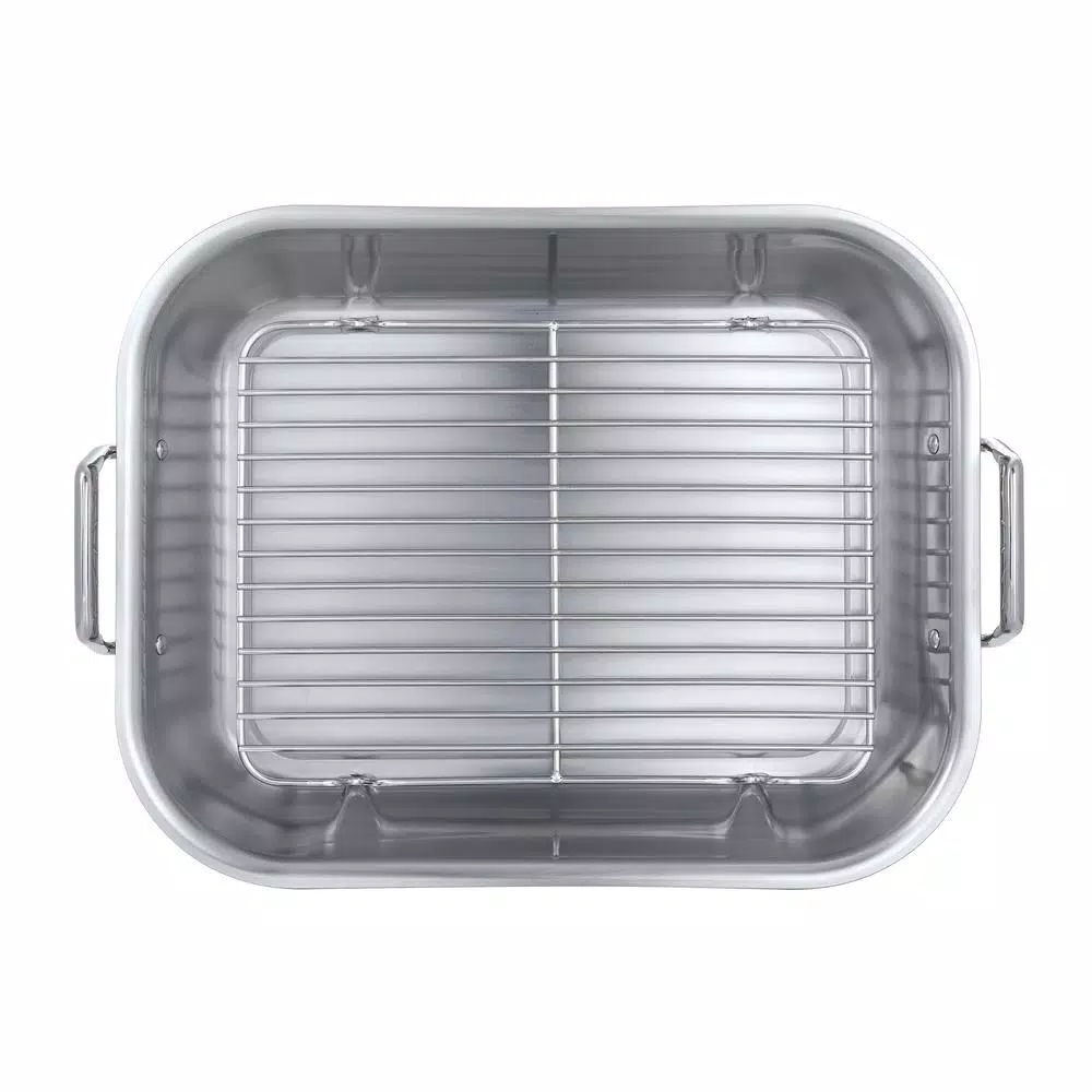 The Tramontina Gourmet Prima Stainless-steel Roasting Pans with basting rack are great for everyday meals and elegant feasts, these handsome, hardworking pans make it simple to prepare everything from perfectly roasted meats, poultry, potatoes and fresh vegetables. The premium restaurant-quality 18/10 stainless-steel construction is long-lasting while the heavy-duty, stainless-steel mirror-polished handles are riveted for extra durability. The ow flared-edges promote even cooking and add a great look for your kitchen. Roasting pan includes removable electro-polished stainless-steel basting rack. Part of the TRAMONTINA GOURMET collection, which features timeless products crafted especially for the cooking enthusiast. Made in Brazil, assembled and packaged and offered under lifetime warranty.
