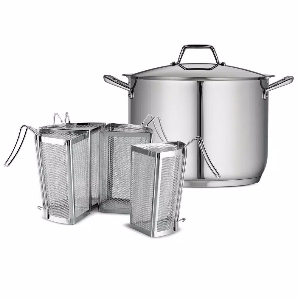 This high-performance pasta cooking set with inserts from Tramontina is sure to become an instant favorite in your busy professional kitchen! The Tramontina Gourmet Prima 16 Qt Pasta Cooking Set includes: 16 Qt stock pot and 4piece stainless steel pasta inserts. The stock potโs tri-ply base construction is behind its exceptional performance that distributes heat evenly. Its base is impact-bonded with three layers that consist of 18/10 stainless steel, an aluminum core for conductivity, and magnetic stainless steel, which makes the line perfect for induction-ready cooktops. The mesh inserts allow you to boil a variety of food in one pot all at once. If you cook for a family of pasta-lovers, this set is sure to become an instant favorite. As an added bonus, itโs also dishwasher-safe! This set is part of the Tramontina Gourmet collection known for both beauty and performance with its sleek design and superior durability.