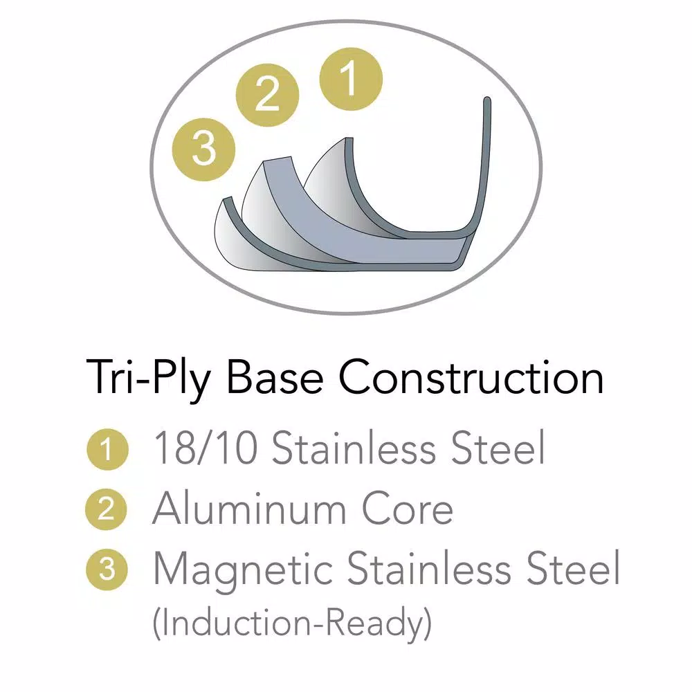 - Tri-ply encapsulated impact-bonded base distributes heat evenly