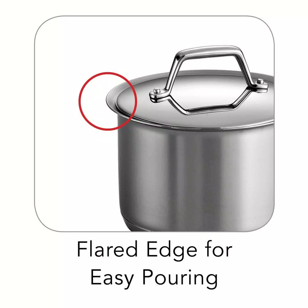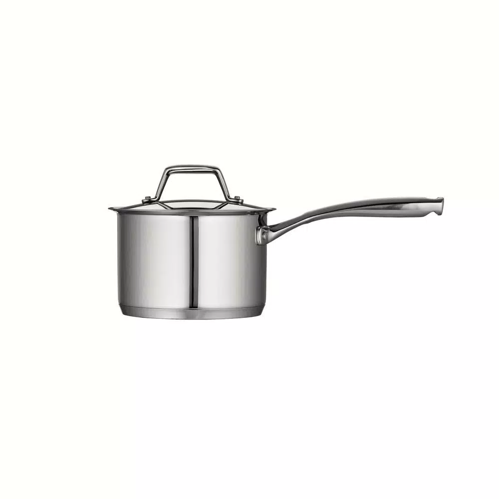 Smaller households (think one or two people) and cooking in smaller portions will benefit from the Gourmet 18/10 Stainless Steel Prima 2 Qt Covered Sauce Pan. Itโs durable enough to use everyday for reducing sauces, boiling eggs or potatoes, steaming veggies, even making oatmeal and reheating soups, on the stovetop or in the oven. The Prima Sauce Panโs tri-ply base is impact-bonded with a pure aluminum core between a layer of 18/10 stainless steel and a layer of magnetic stainless steel for even heat distribution and compatibility for all cooktops. Its panโs precision-fitted 18/10 stainless steel lid locks in heat and nutrients, while cast stainless steel, riveted handles allow for extra strength and support, and easy maneuverability, and modern lines feature a flared edge for easy and dripless pouring. As an added detail, admirers of a chic, stylish kitchen will appreciate the panโs mirror-polished exterior finish!
